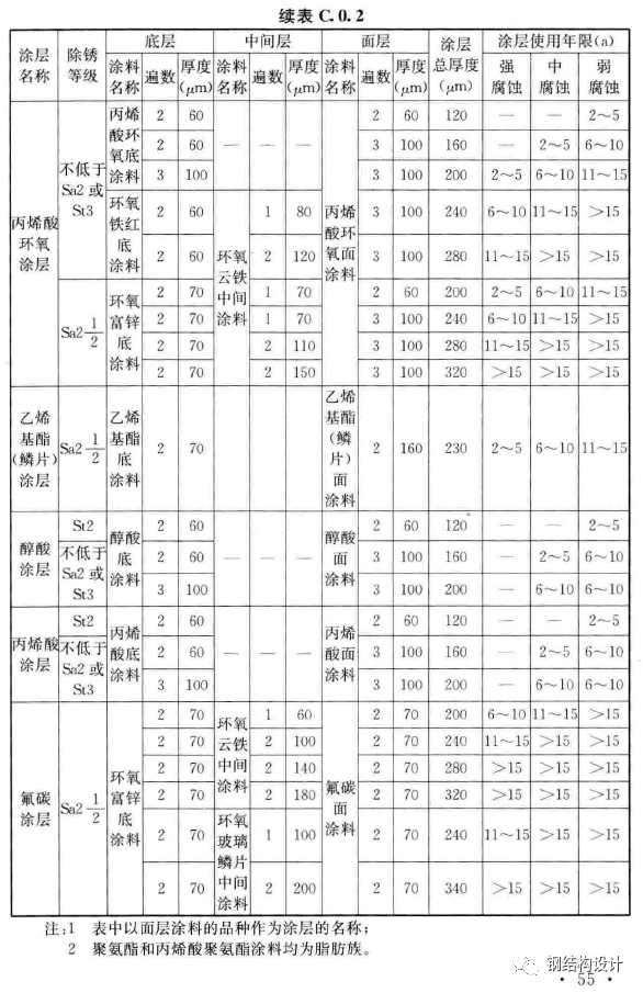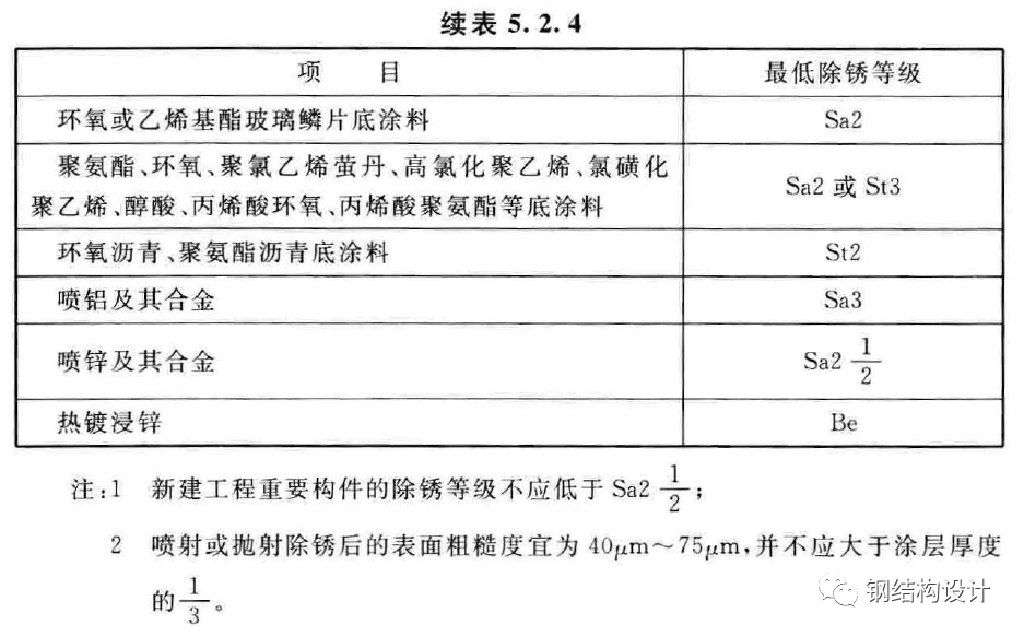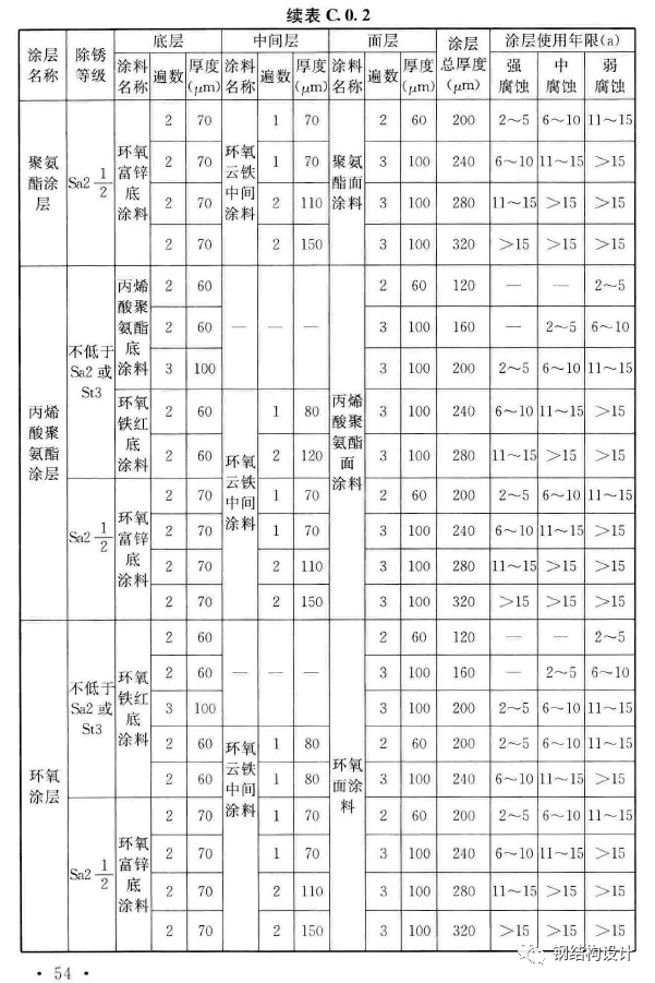 根据GB/T50046-2018第5.2.3条,钢结构的表面防护宜符合下表规定。