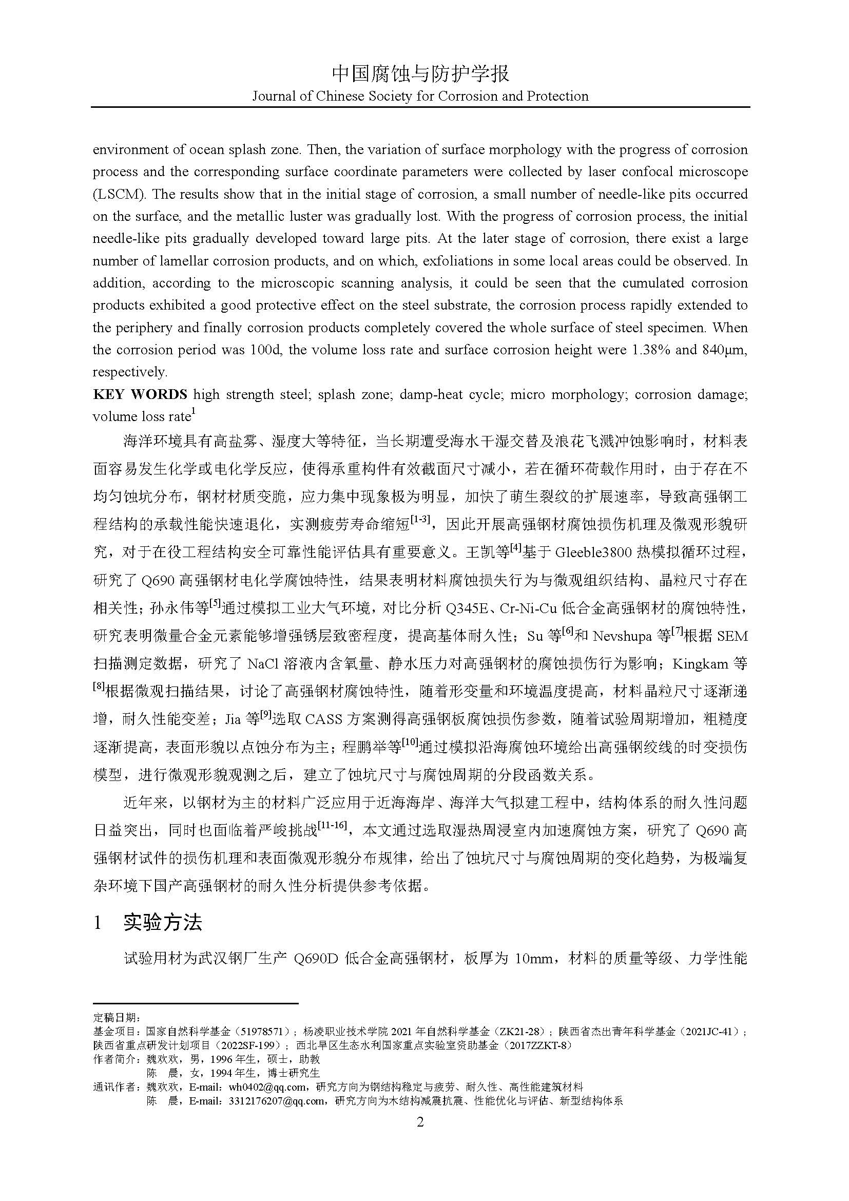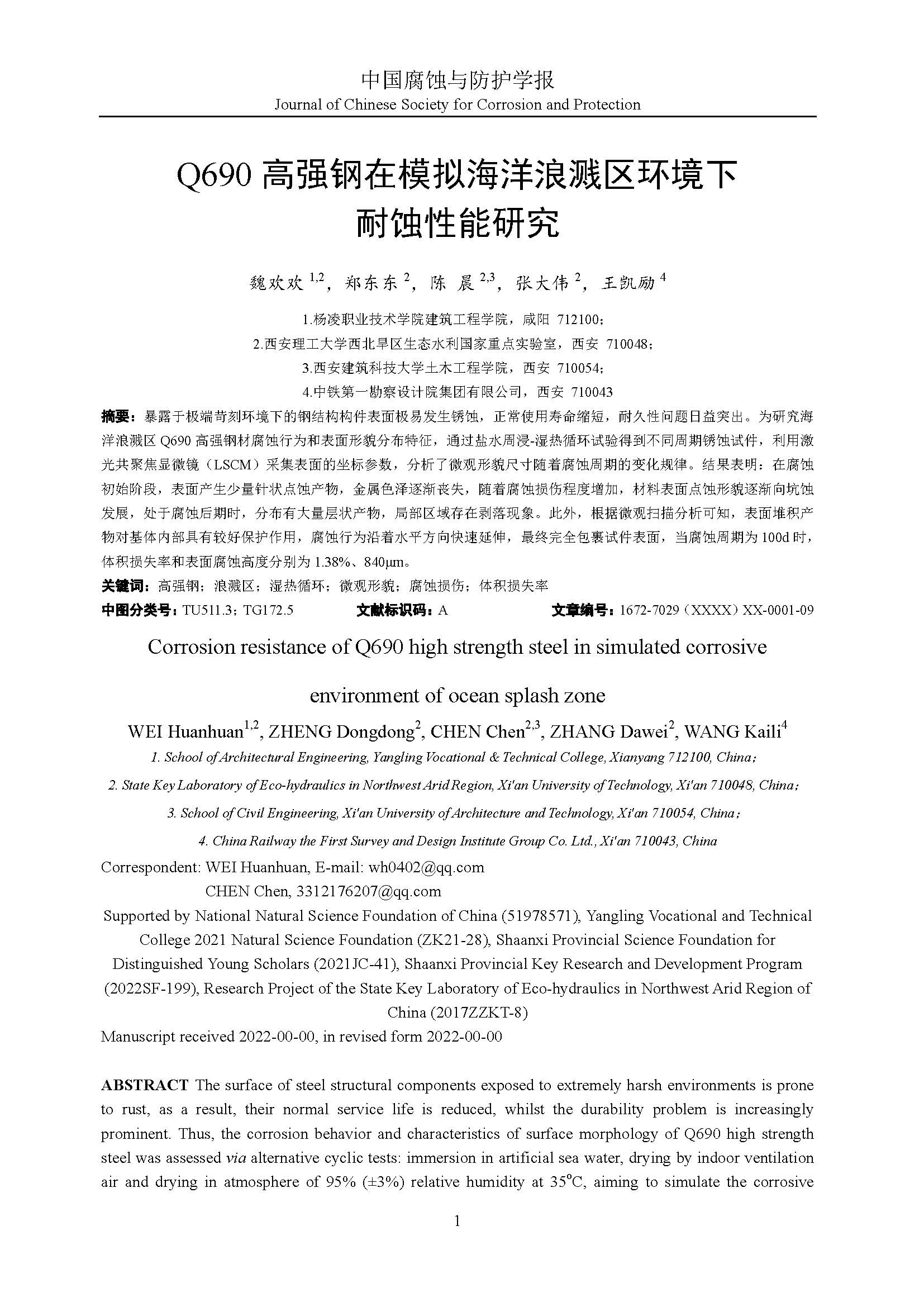Q690高强钢在模拟海洋浪溅区环境下耐蚀性能研究