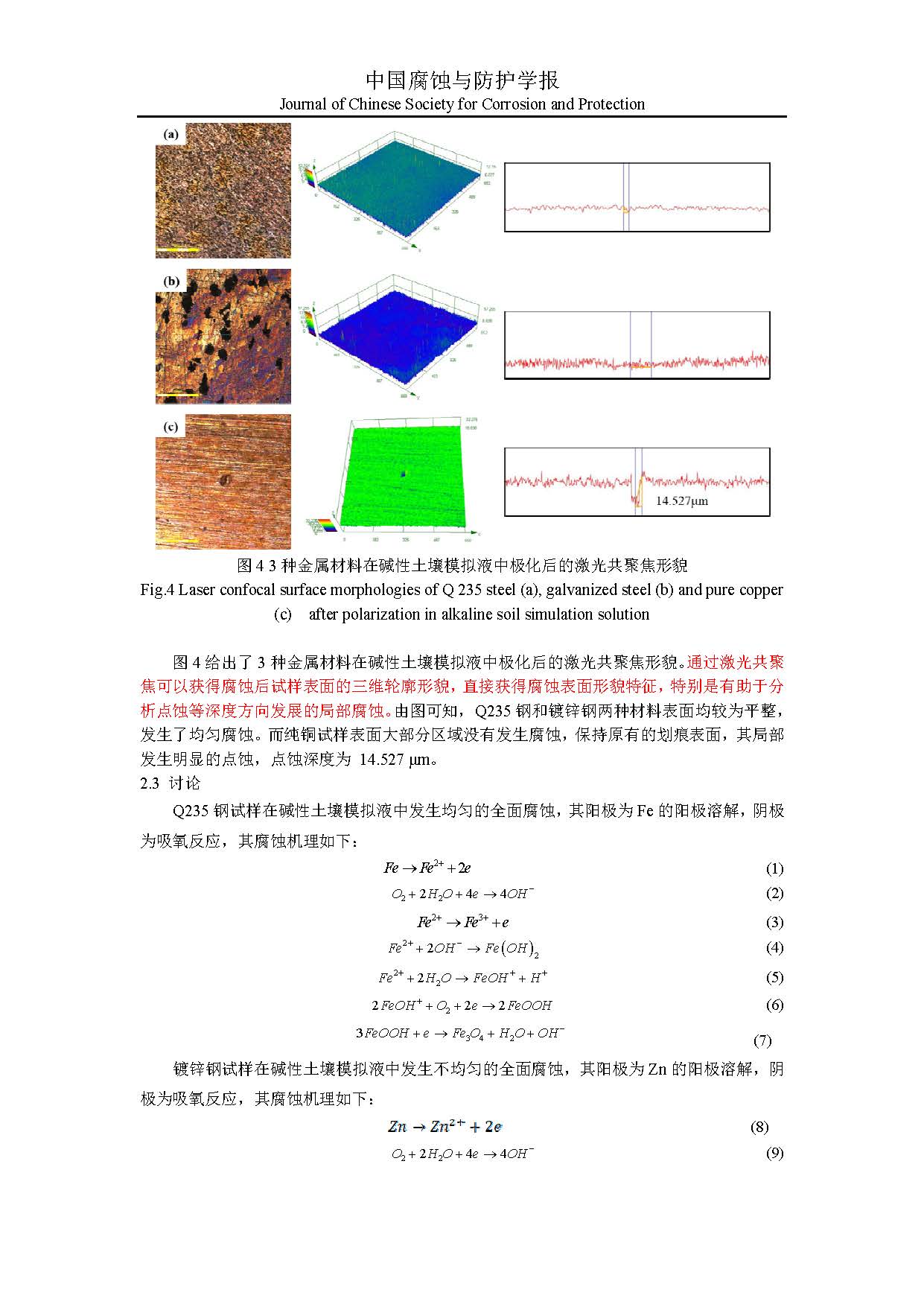 典型接地材料在碱性土壤模拟液中的腐蚀行为研究