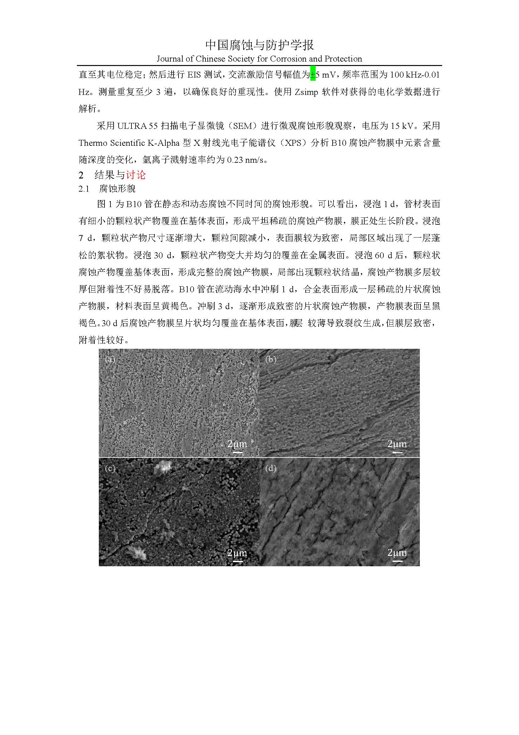 来源:中国腐蚀与防护学报