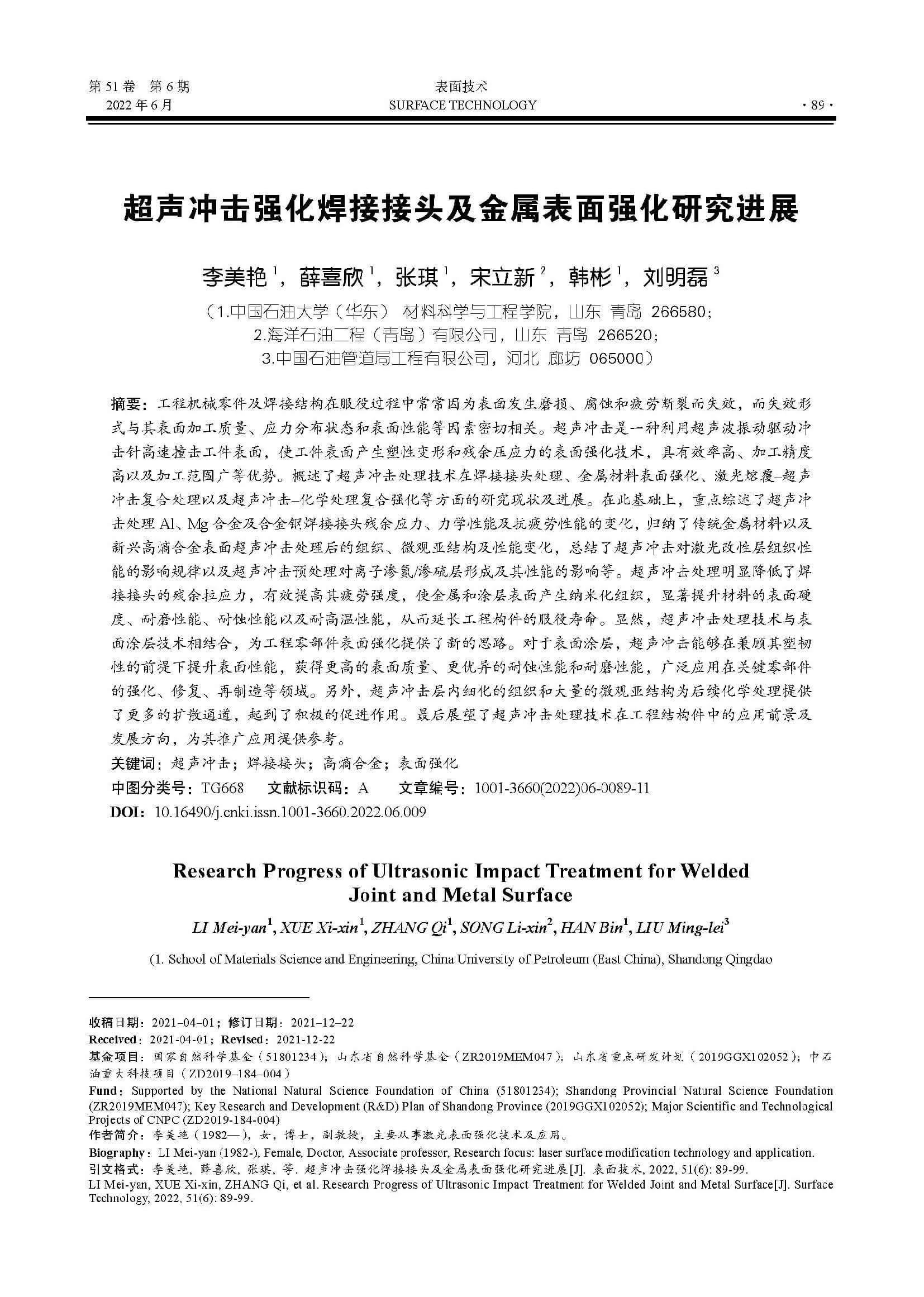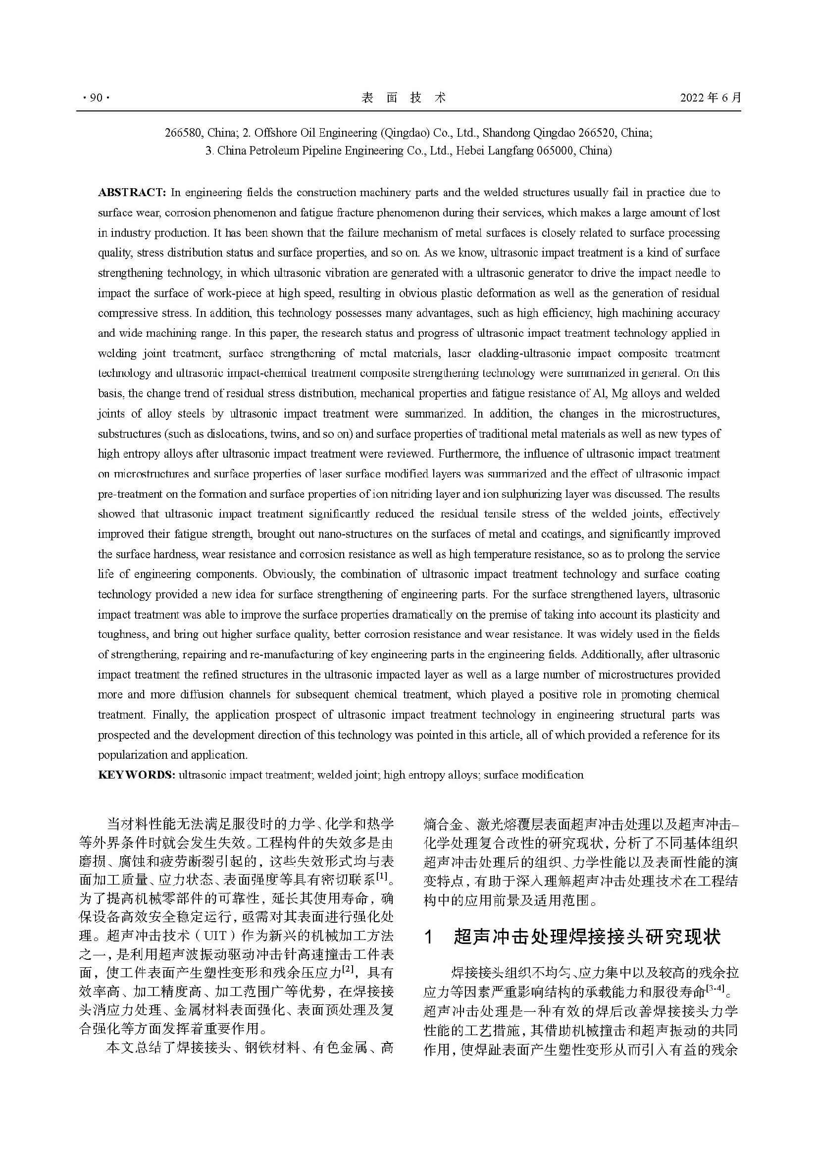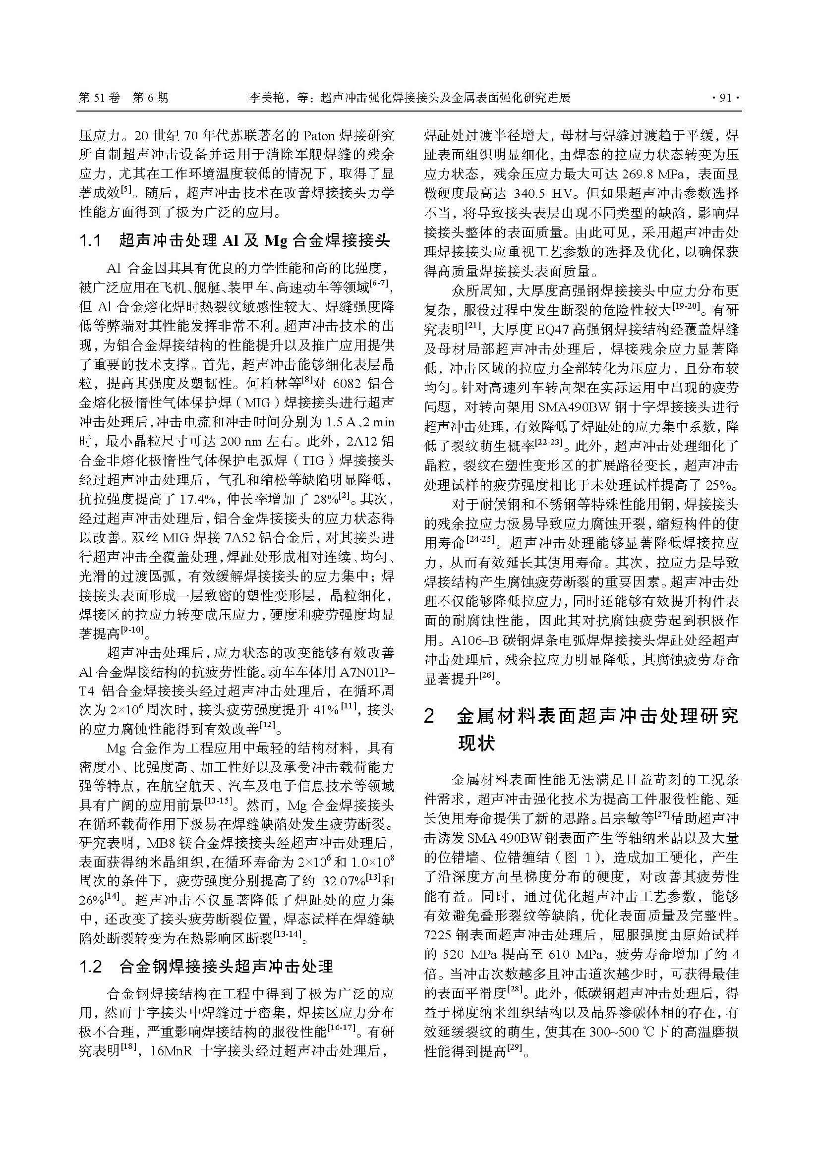 超声冲击强化焊接接头及金属表面强化研究进展