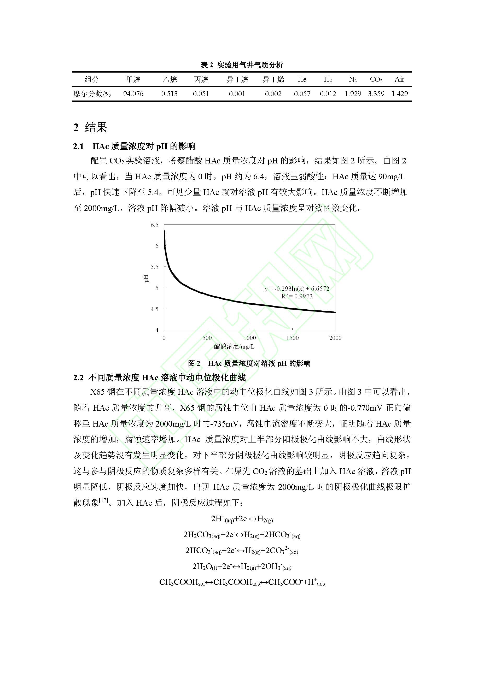 CO2环境中醋酸对X65钢湿气管线顶部腐蚀行为的影响