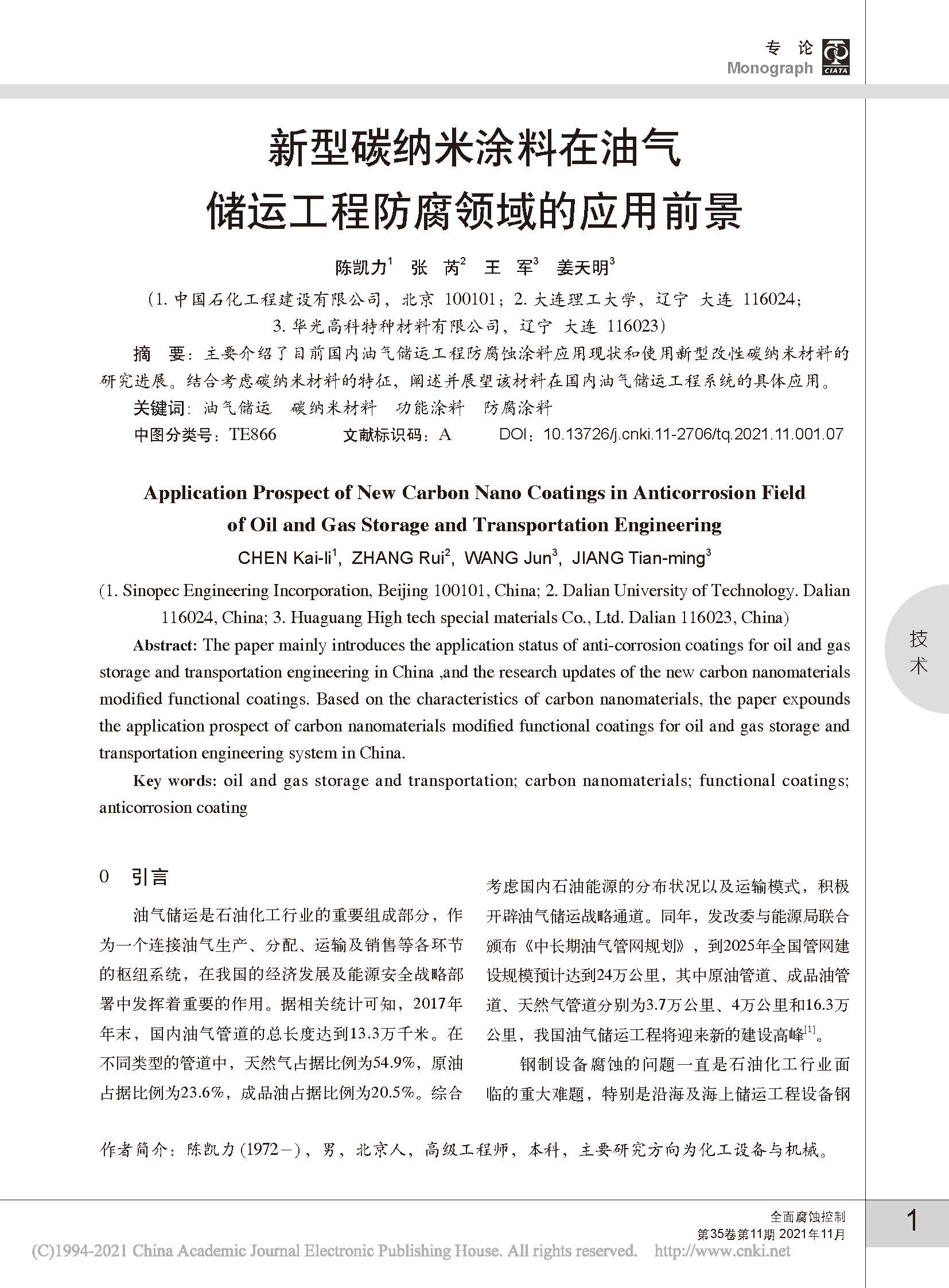 新型碳纳米涂料在油气储运工程防腐领域的应用前景