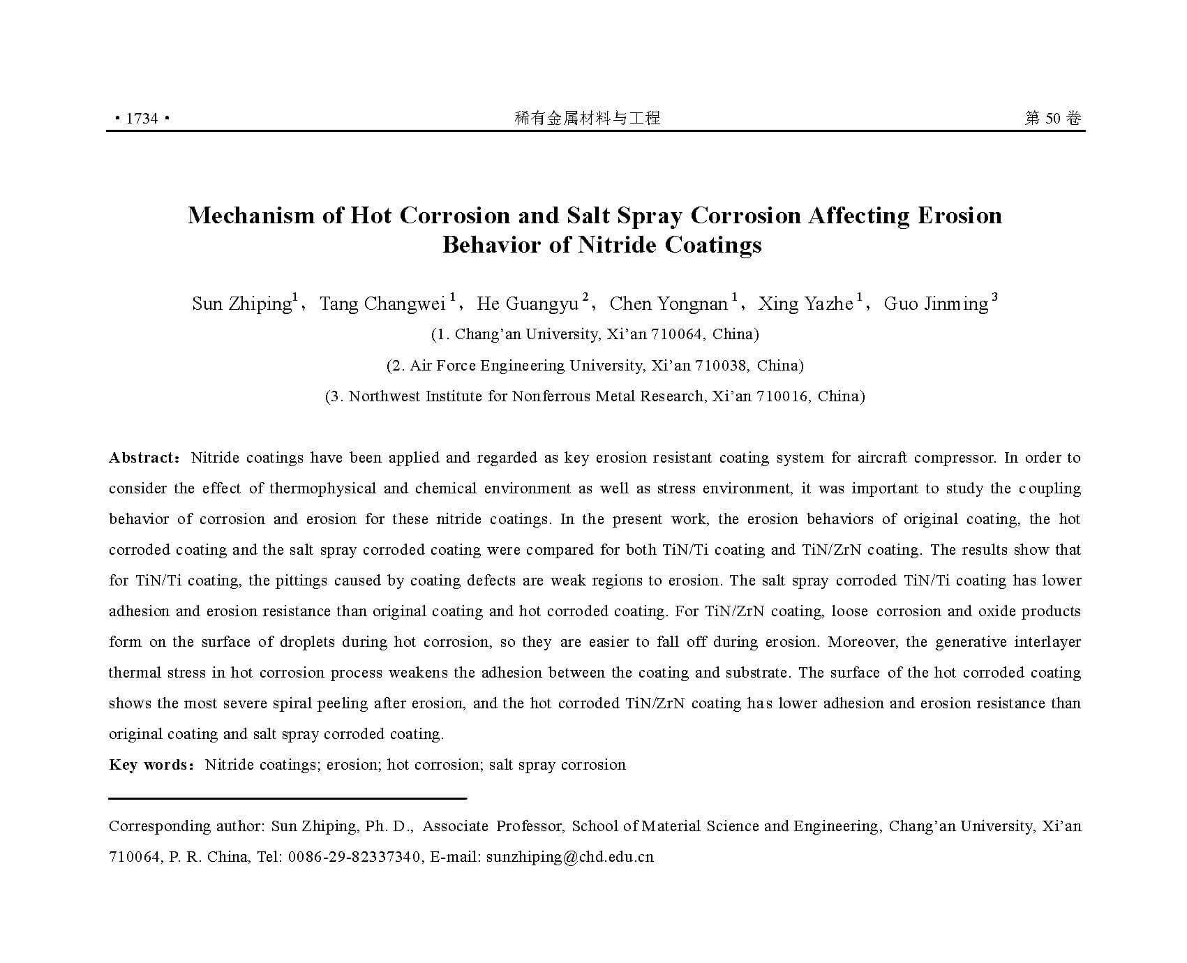 热腐蚀和盐雾腐蚀影响氮化物涂层冲蚀行为的机制