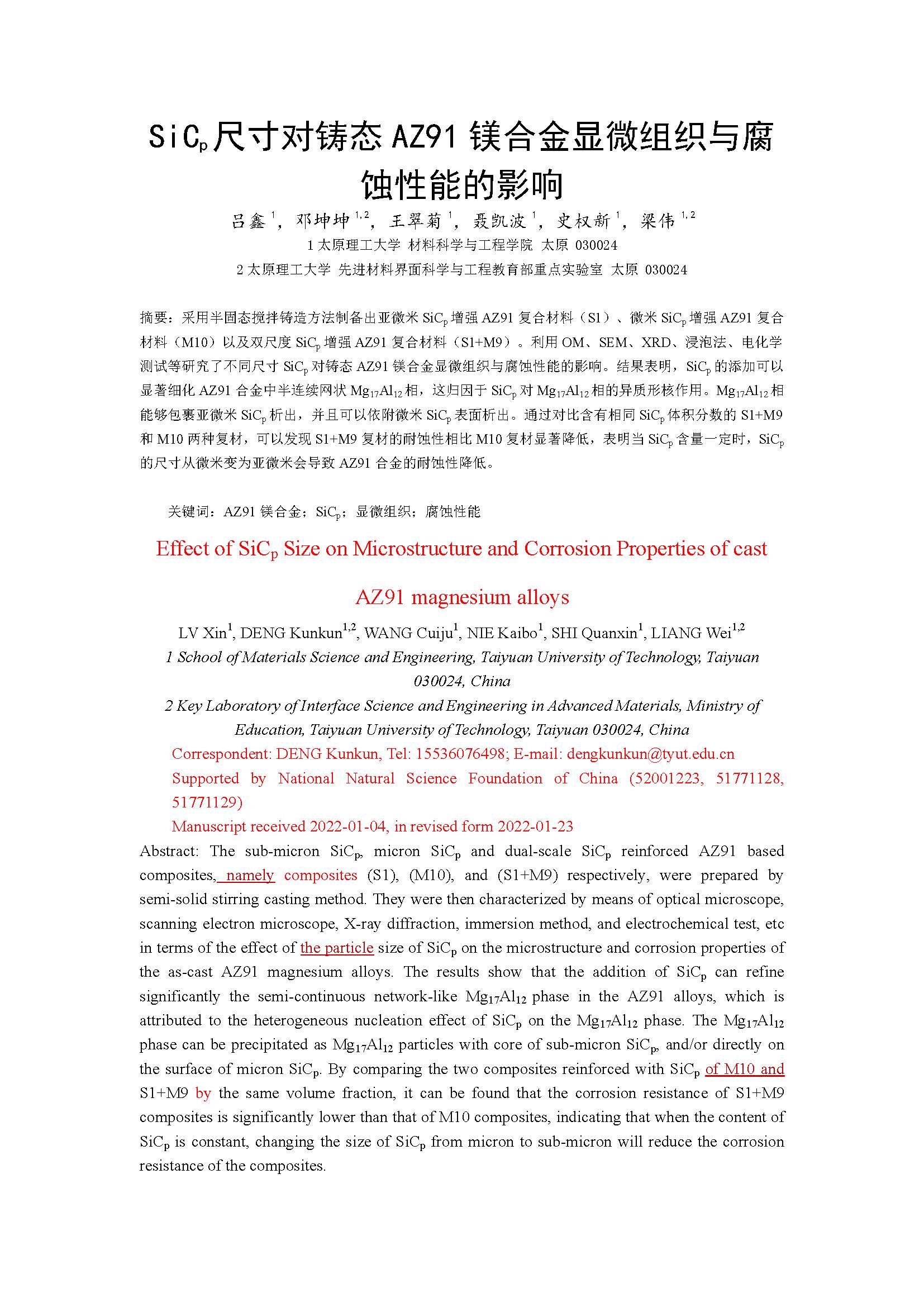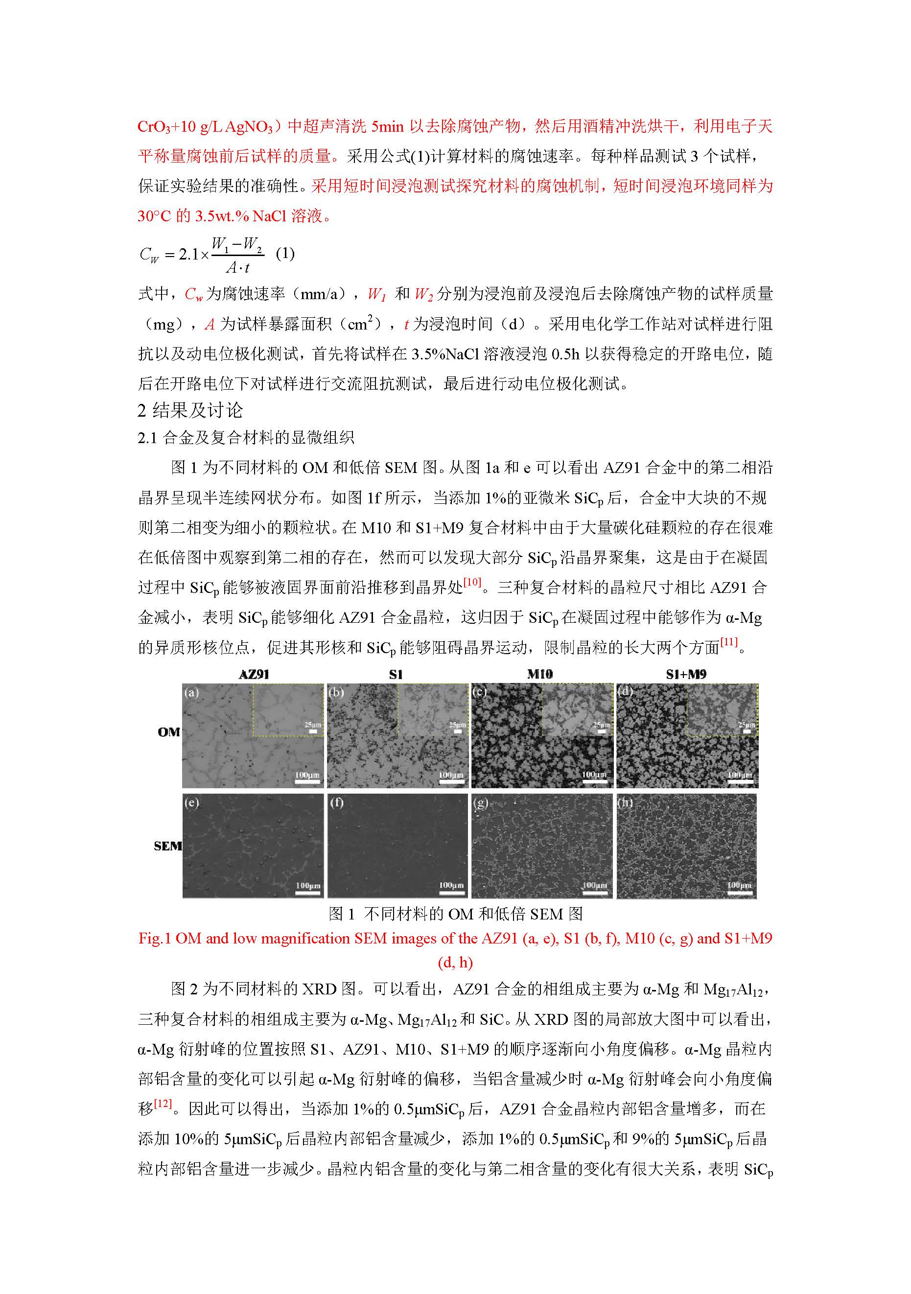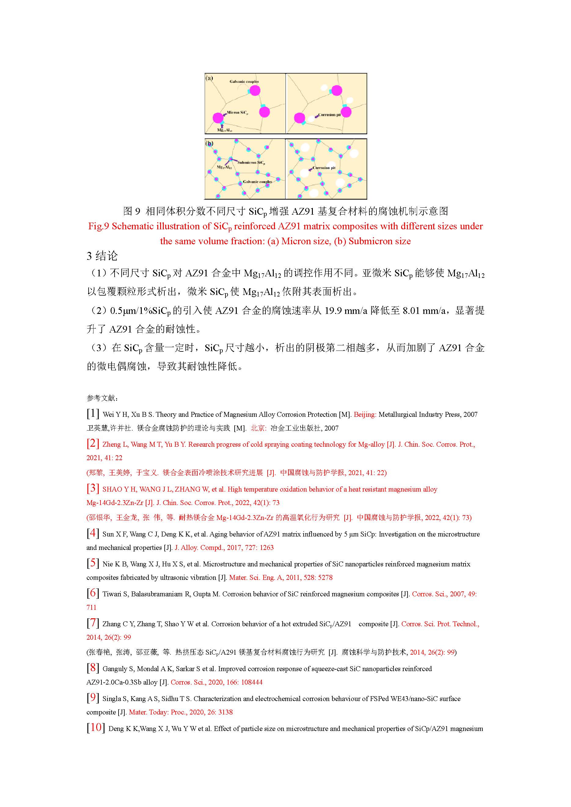 SiCp尺寸对铸态 AZ91 镁合金显微组织与腐蚀性能的影响