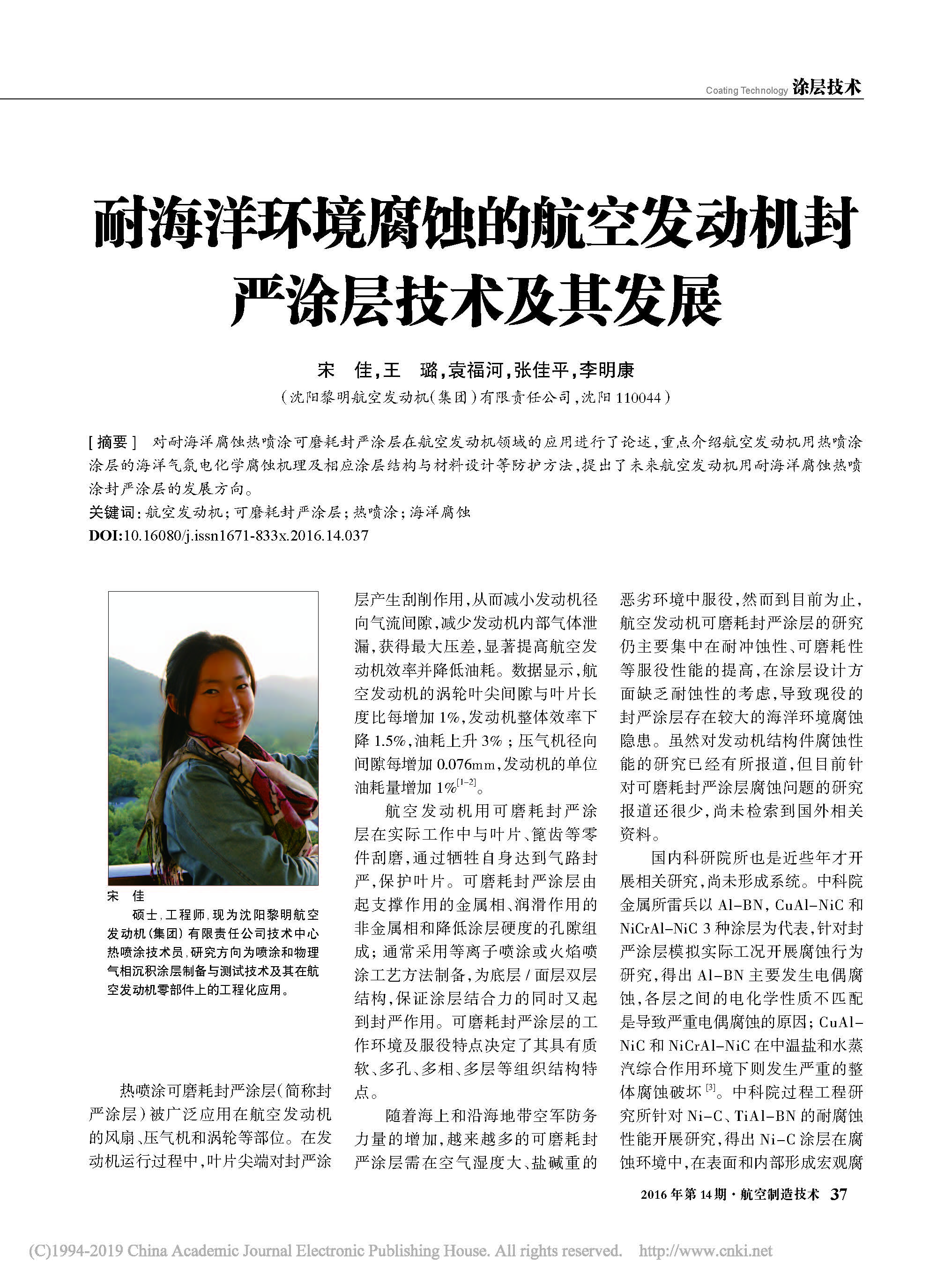 耐海洋环境腐蚀的航空发动机封严涂层技术及其发展