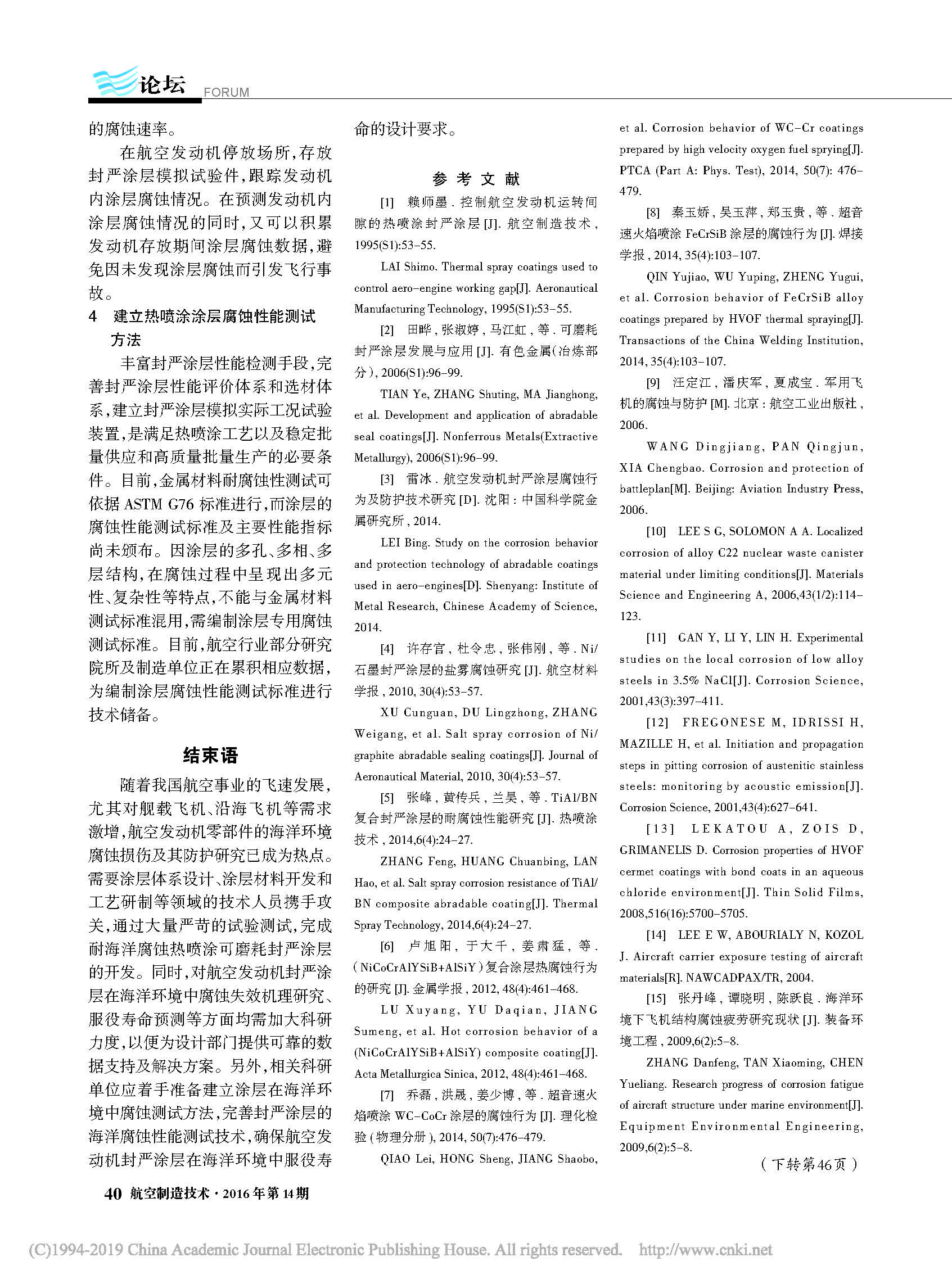 航空发动机高温涂层耐海洋大气腐蚀研究进展