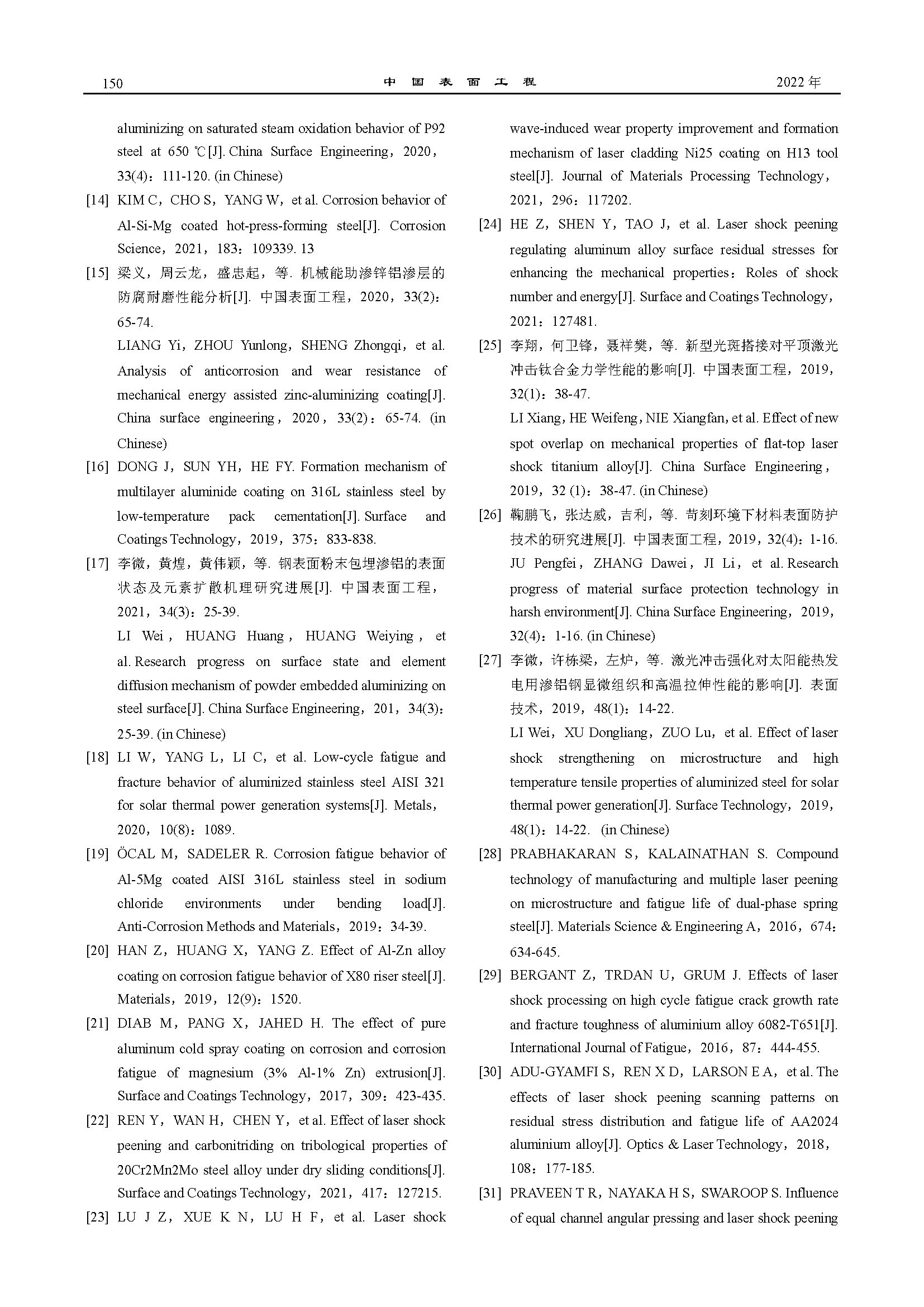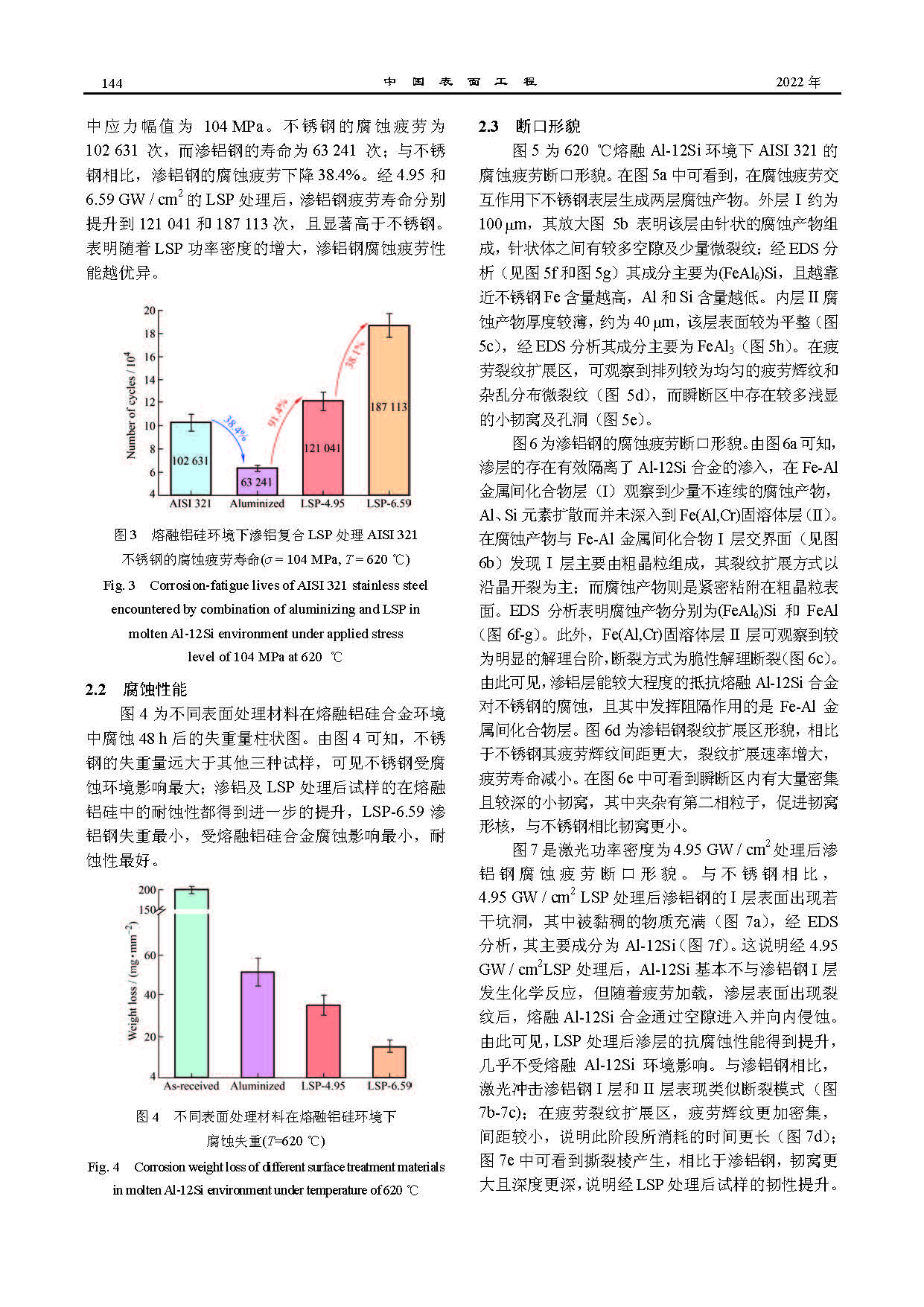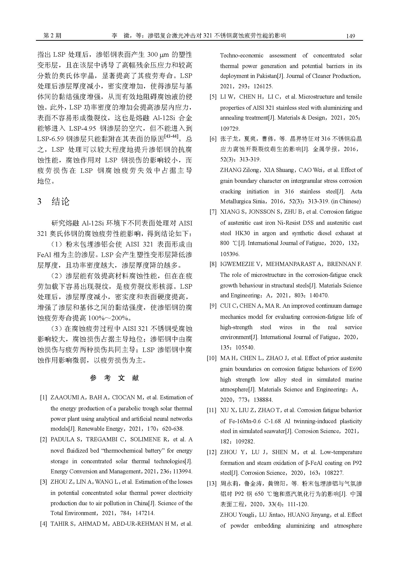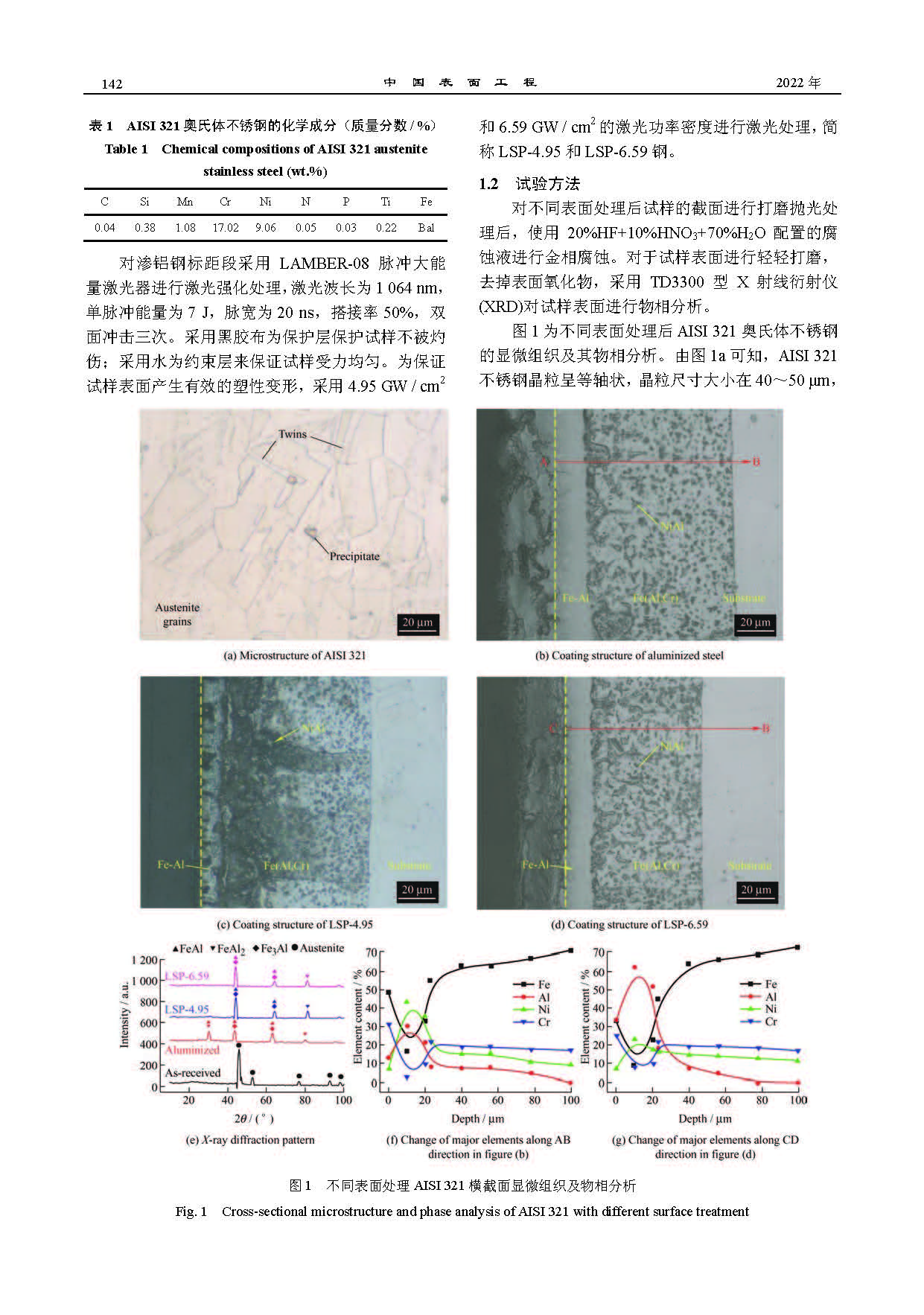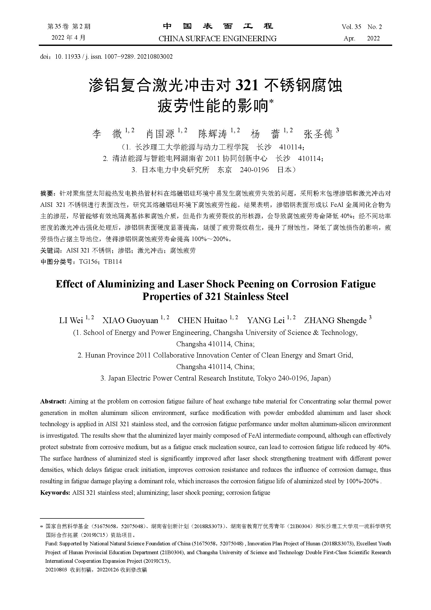 标签: AISI 321 不锈钢, 渗铝, 激光冲击, 腐蚀疲劳