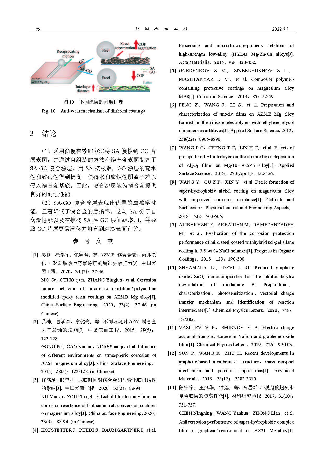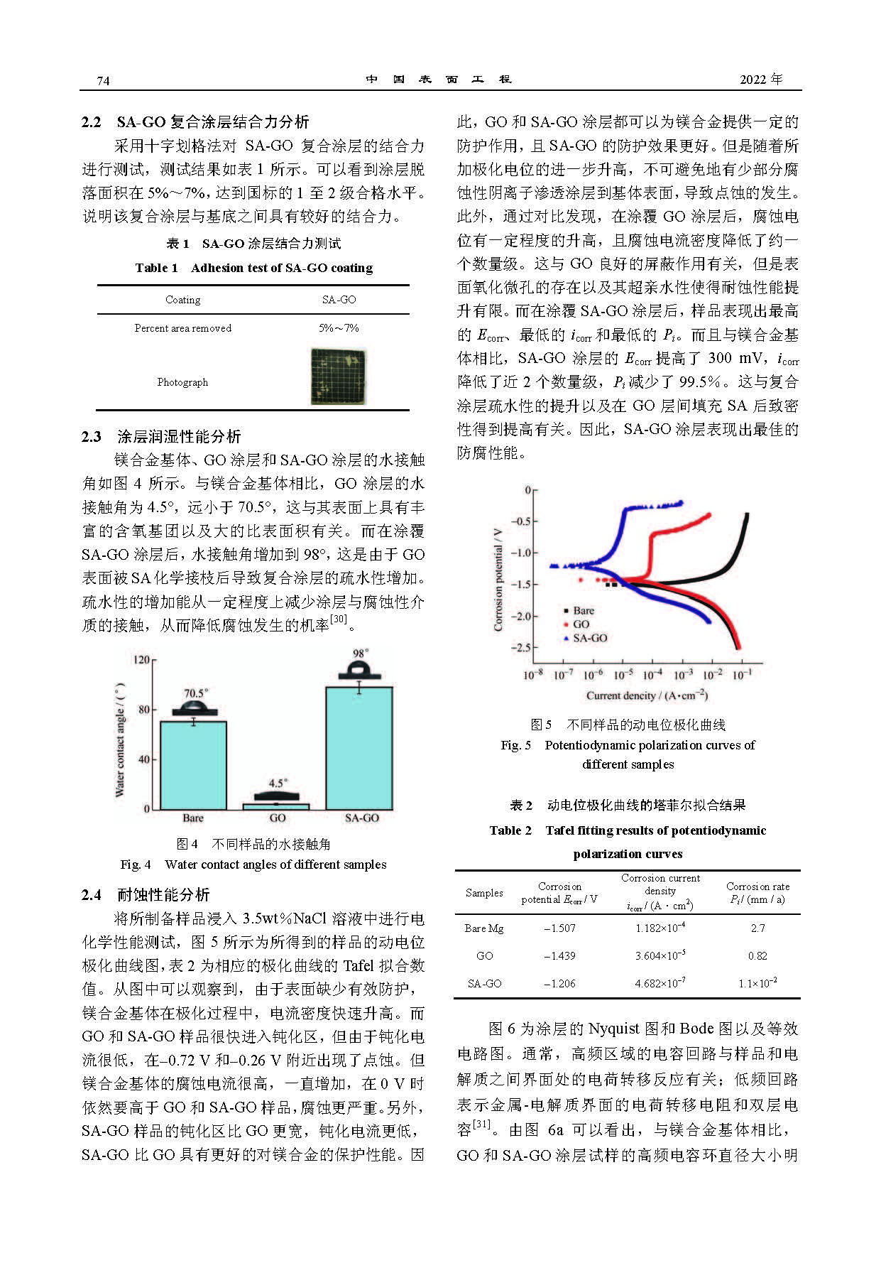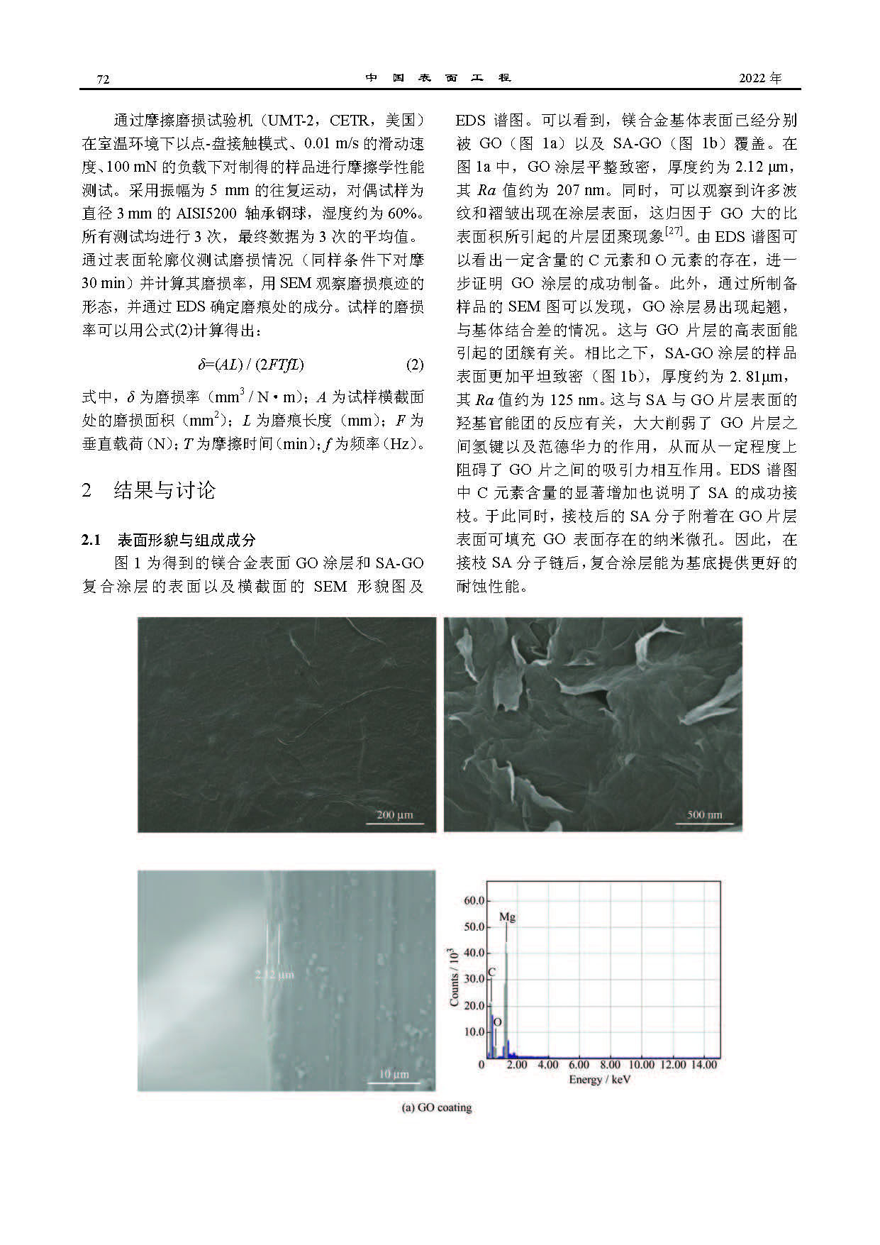 镁合金表面SA/GO耐蚀/耐磨一体化复合涂层
