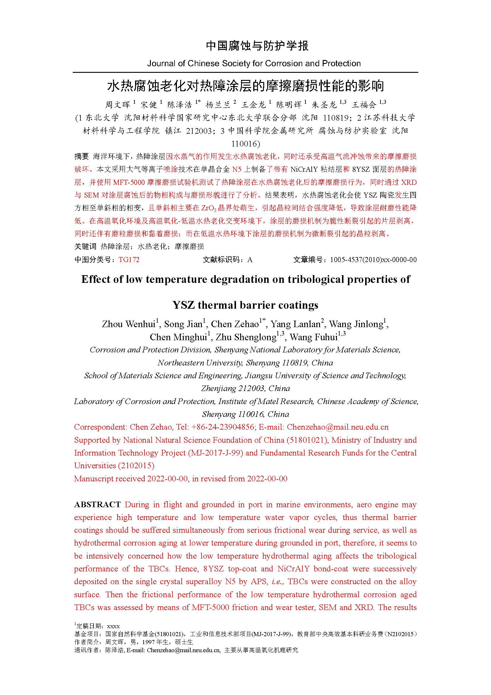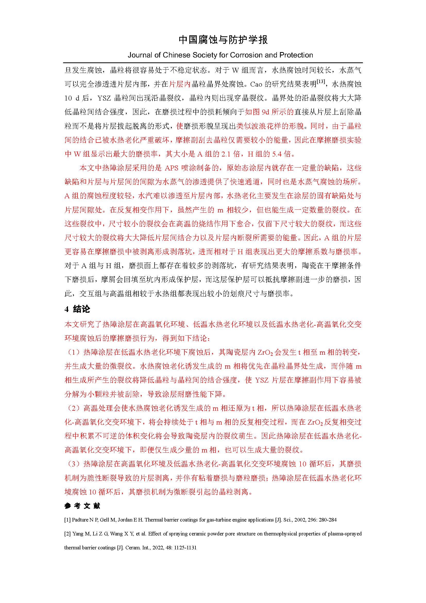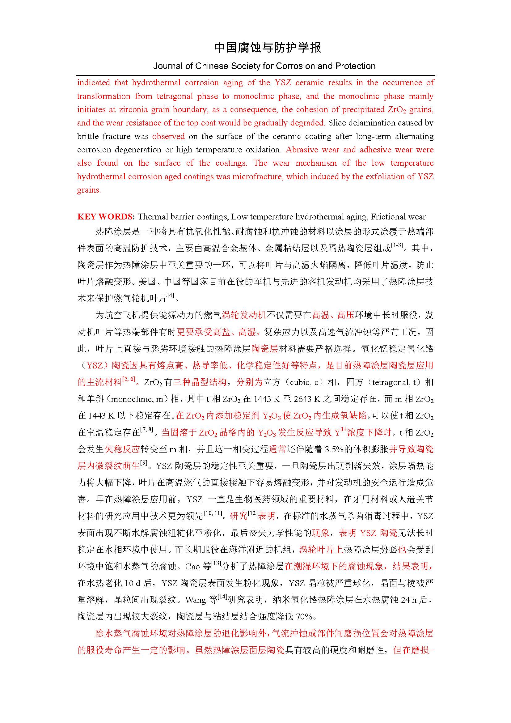 水热腐蚀老化对热障涂层的摩擦磨损性能的影响
