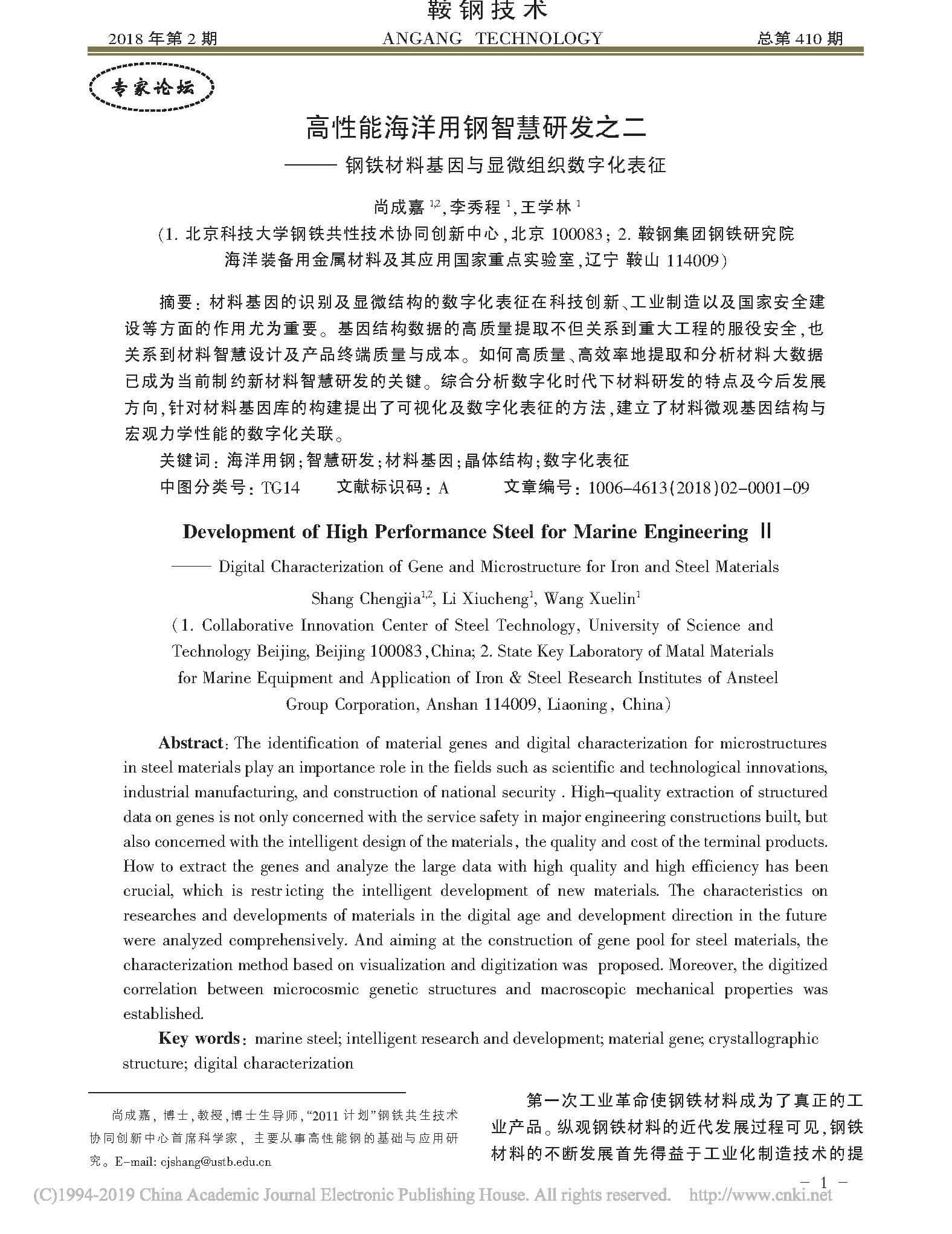 高性能海洋用钢智慧研发之二 —— 钢铁材料基因与显微组织数字化表征