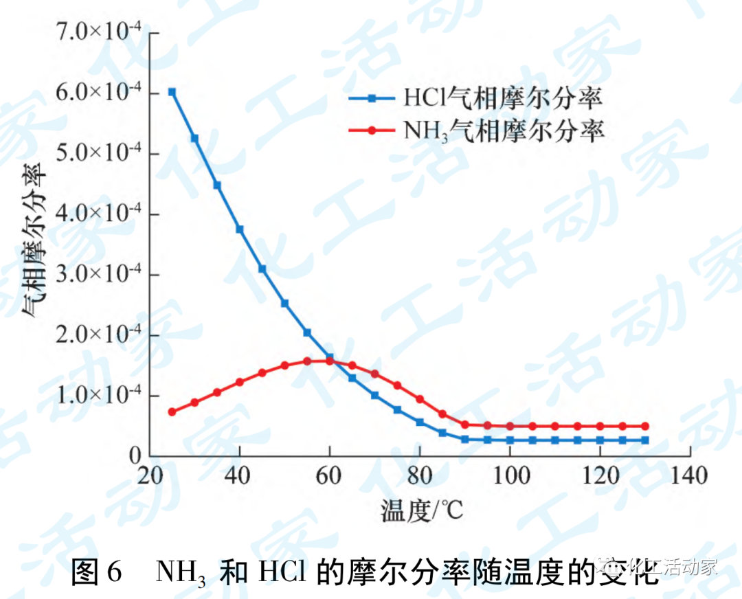 NH3和HCl两者在气相中的比例可通过Aspen计算获取,具体见图6。