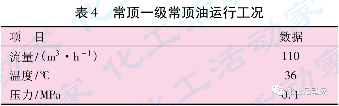 ZH换热器所在常顶系统日常的工艺参数和操作工况如下:操作压力通常为0.11MPa,进出口温度分别为126℃和82℃。表1至表5分别为收集的工艺数据,用于Aspen仿真计算。