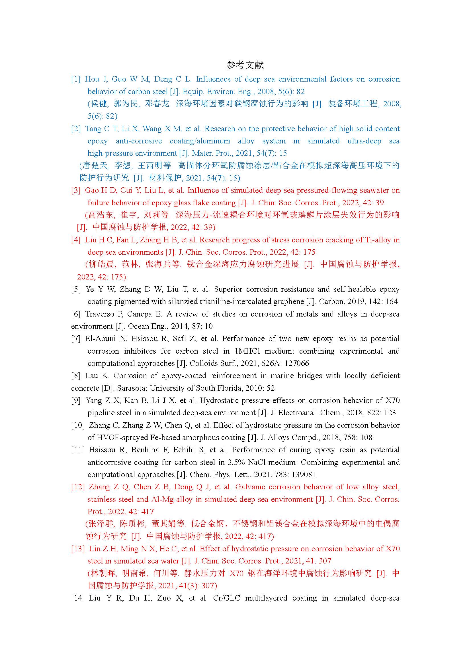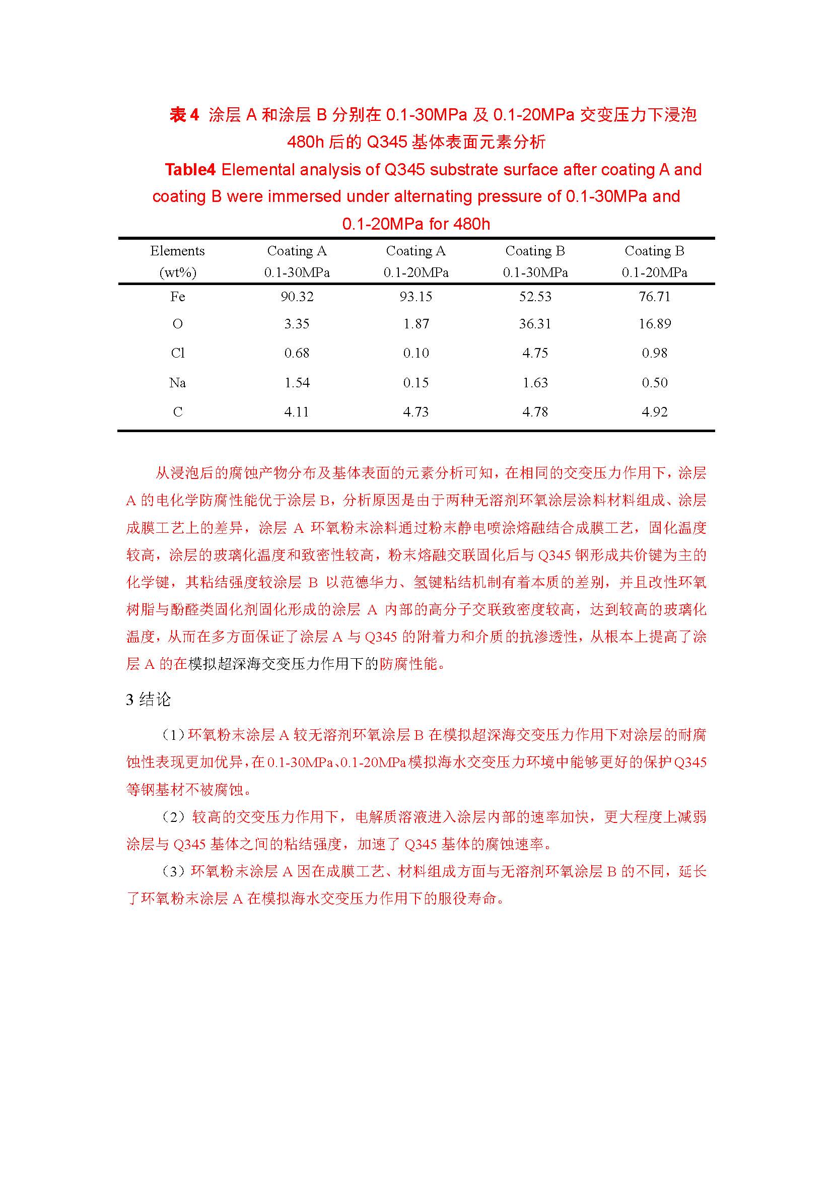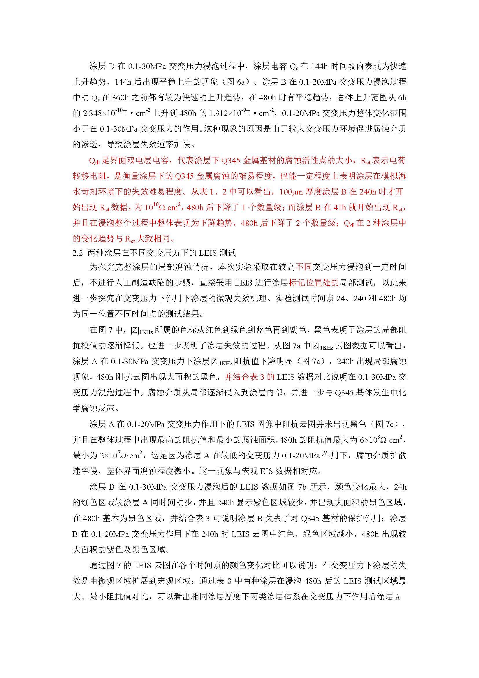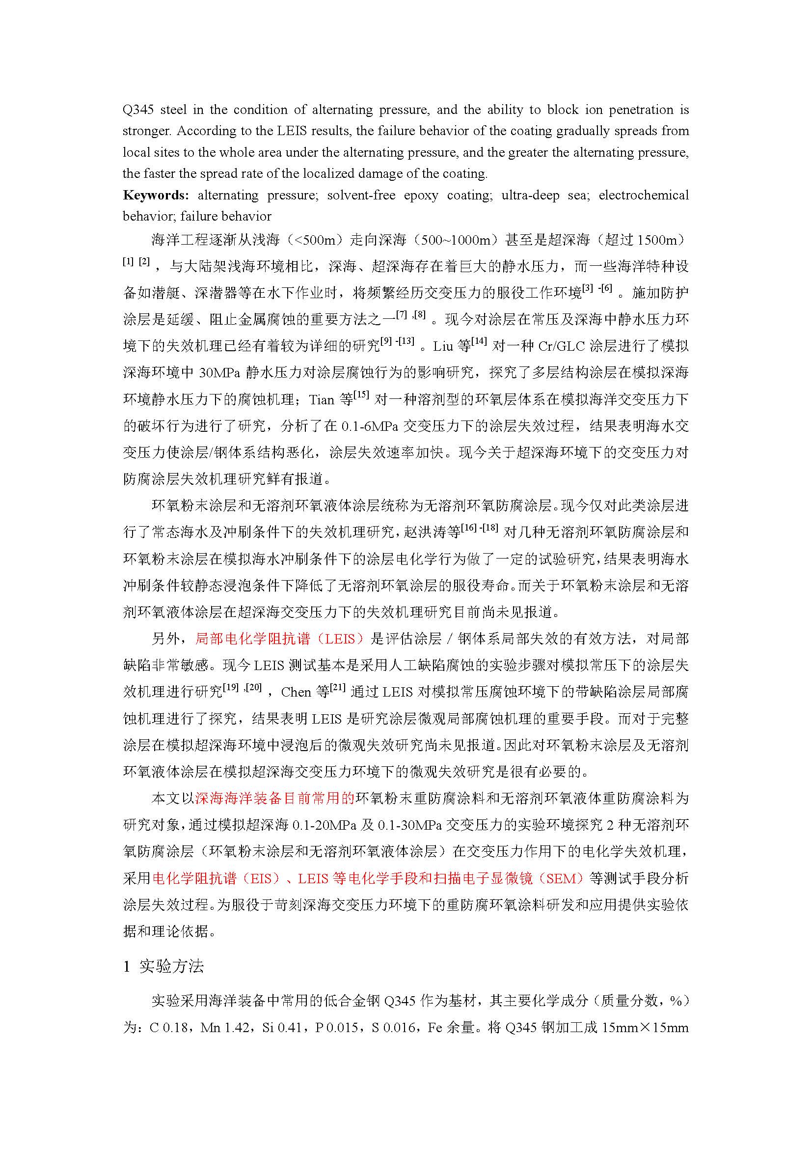 交变压力对无溶剂环氧涂层在模拟超深海环境下的电化学