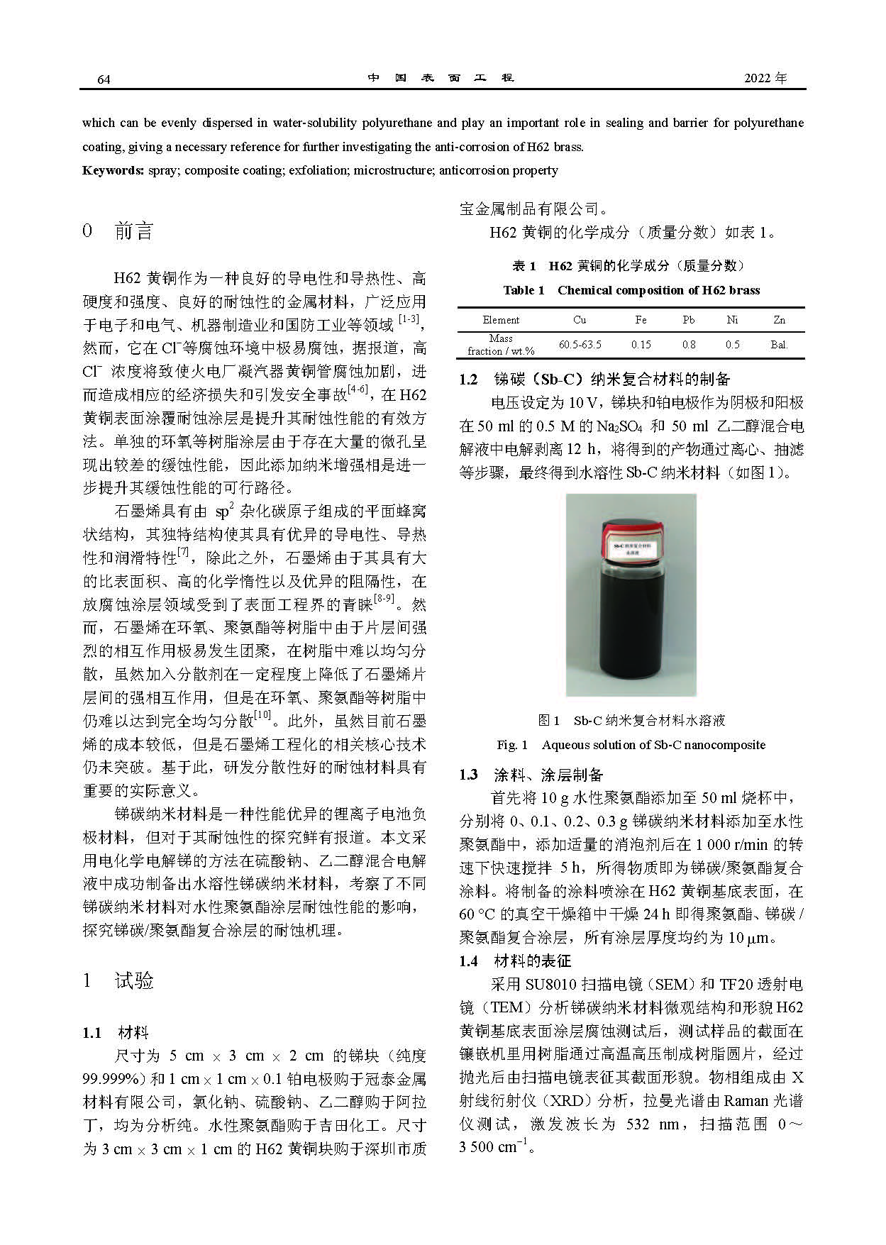 锑碳/聚氨酯复合涂层的制备及其耐蚀性能