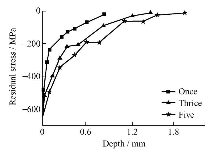 图3 不同次数冲击下TC17钛合金的残余应力分布[38]