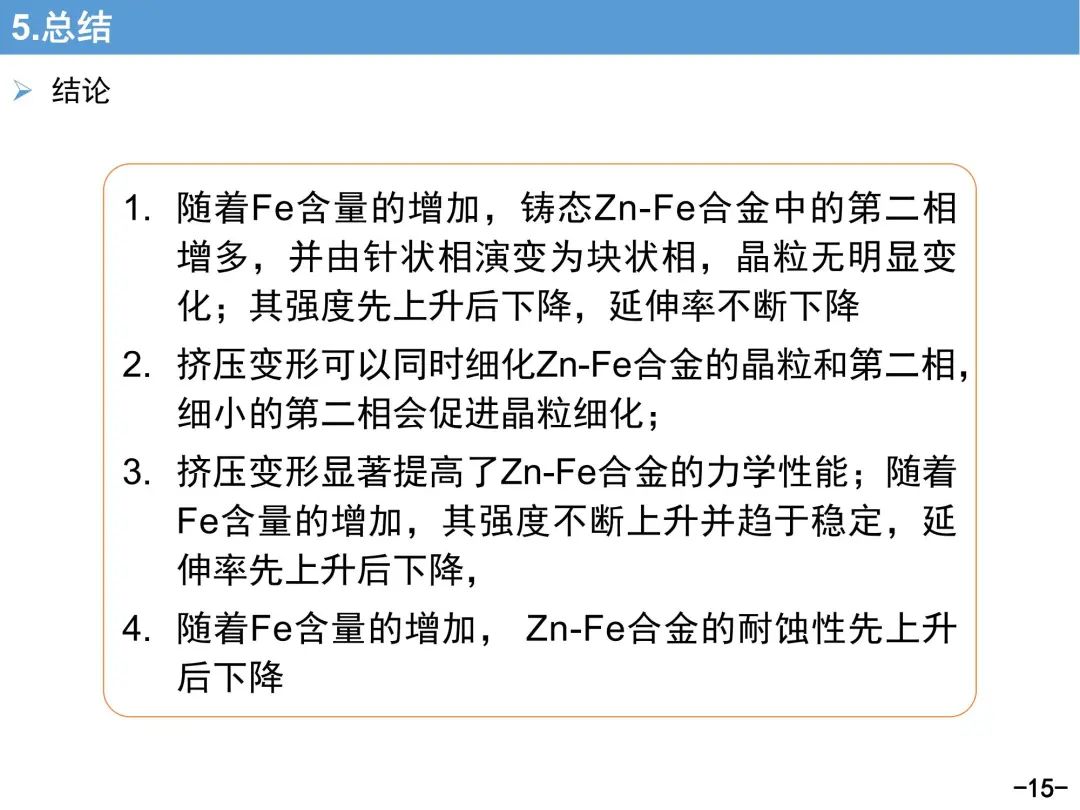 生物可降解Zn-Fe合金的组织性能及耐蚀性研究