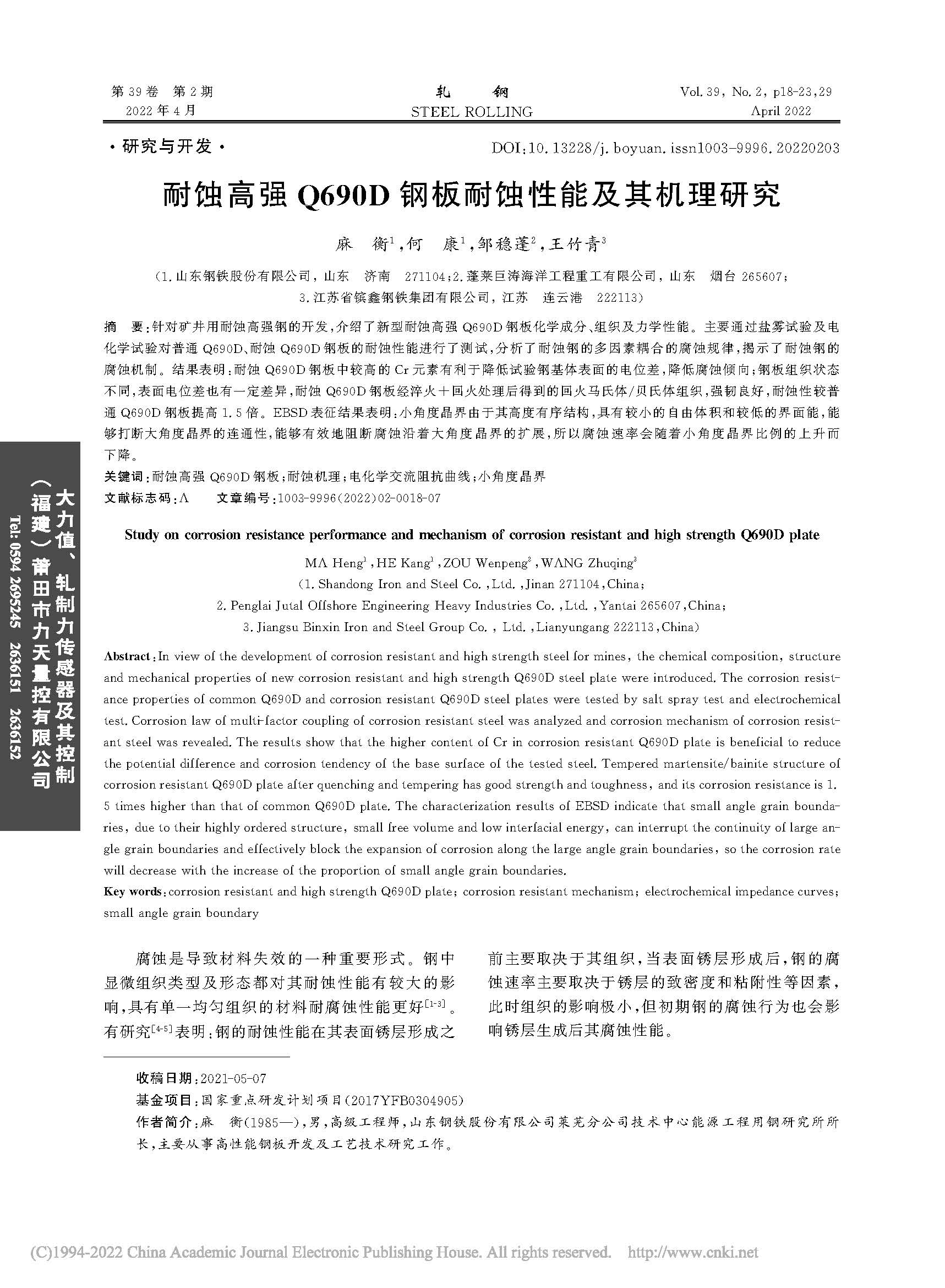 标签: 耐蚀高强Q690D钢板;耐蚀机理