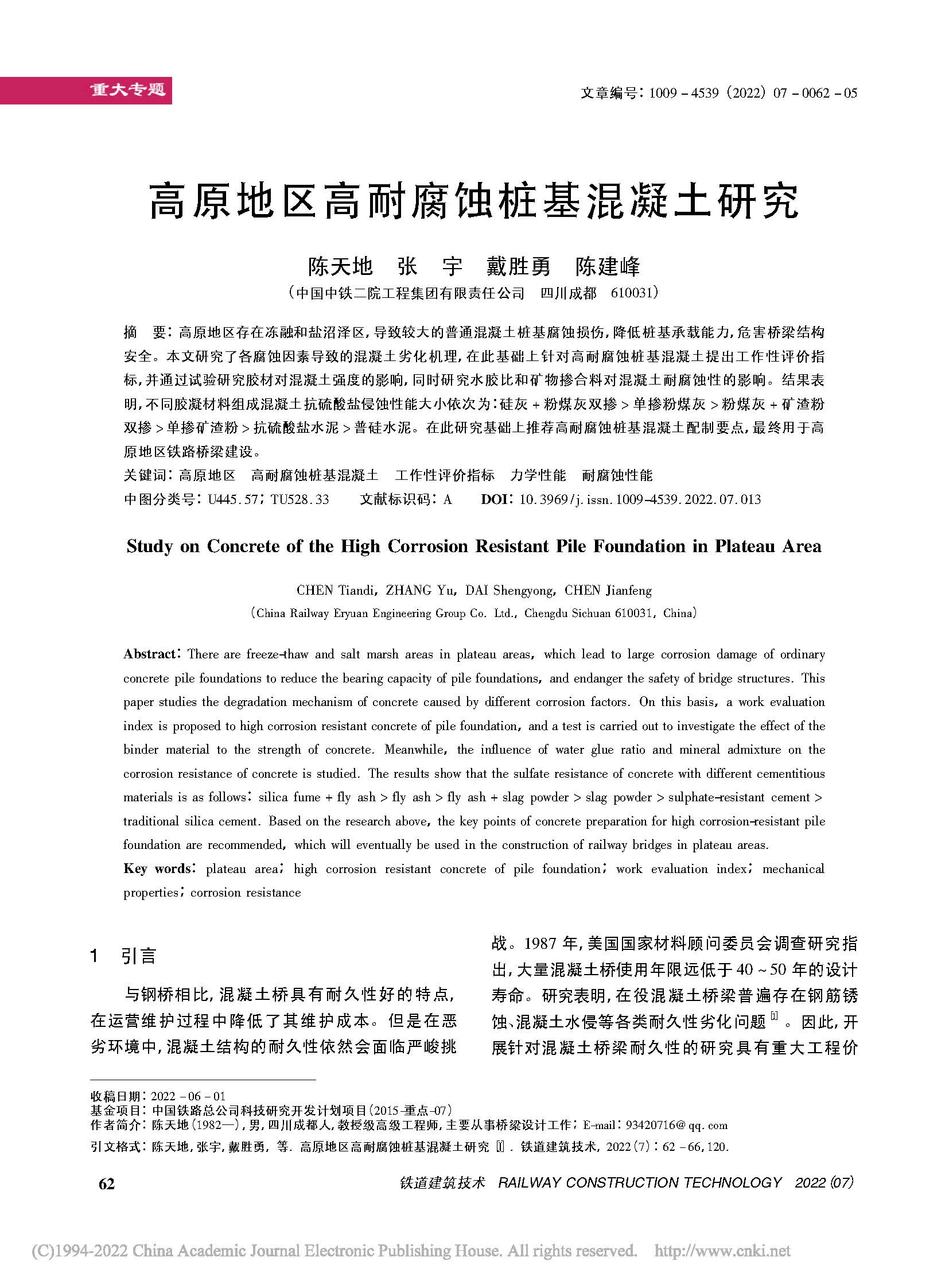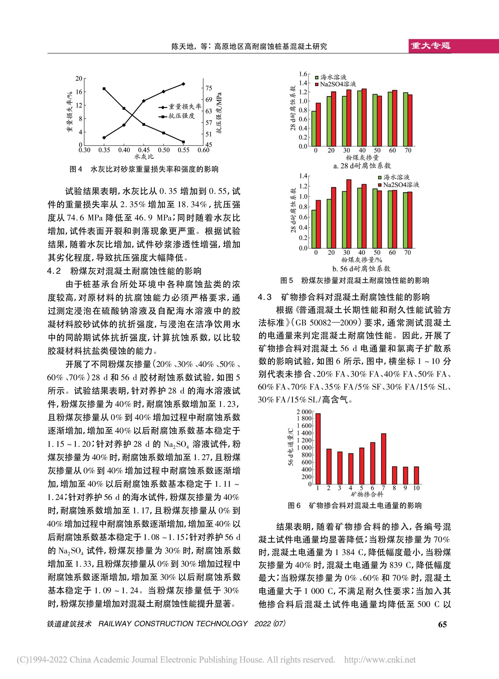 高原地区高耐腐蚀桩基混凝土研究