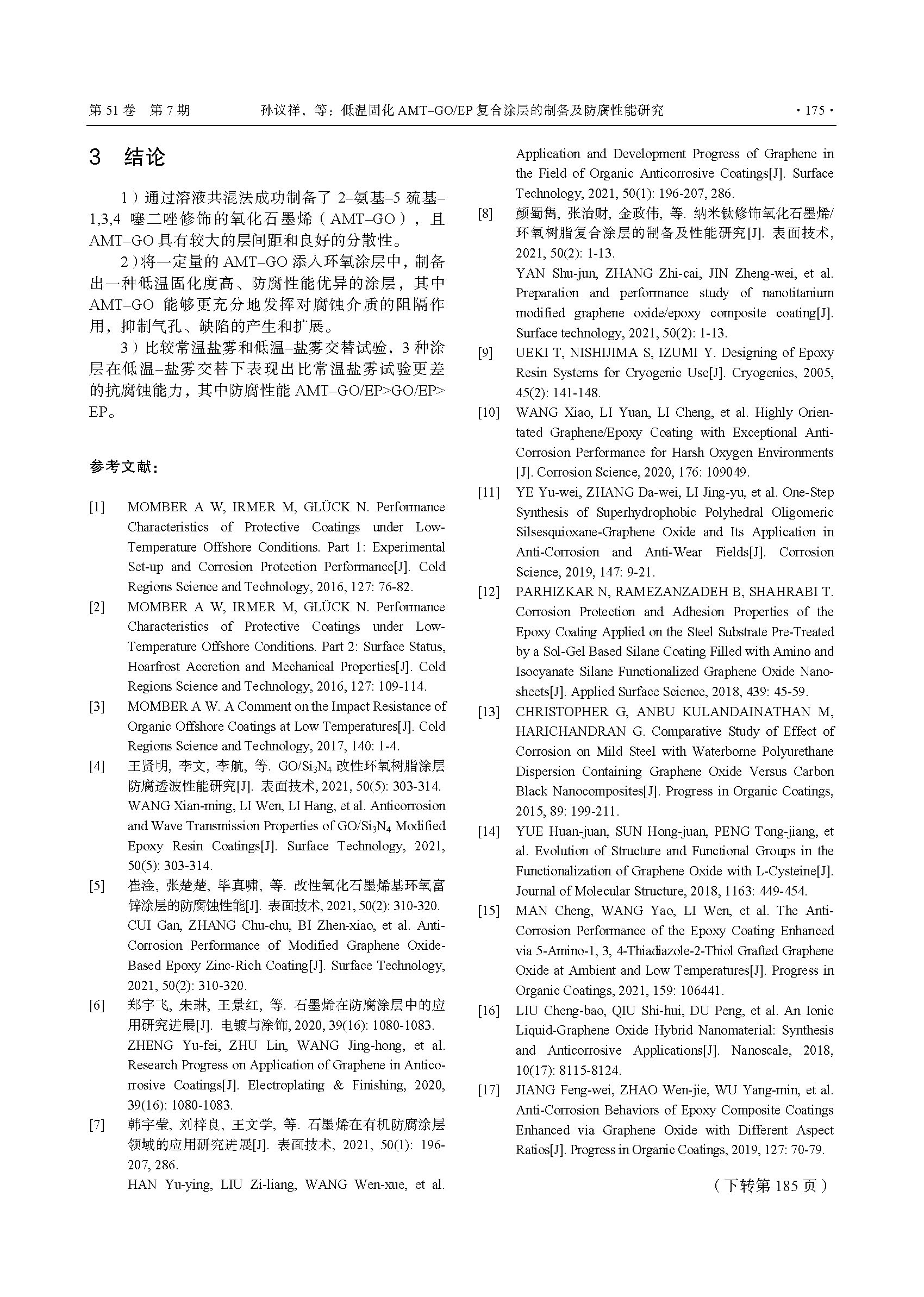 低温固化AMT–GO/EP复合涂层的制备及防腐性能研究