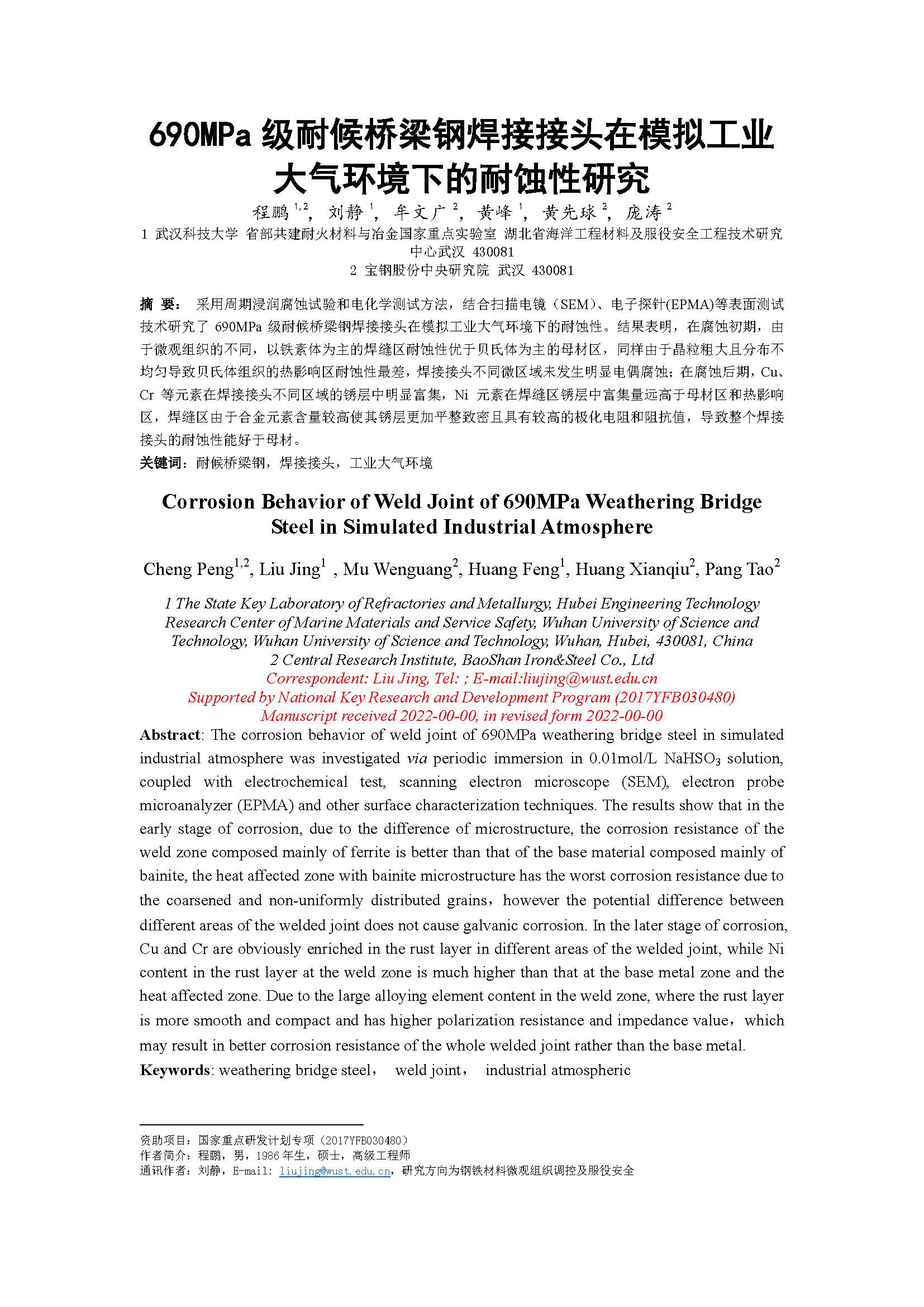 690MPa级耐候桥梁钢焊接接头在模拟工业大气环境下的耐蚀性研究