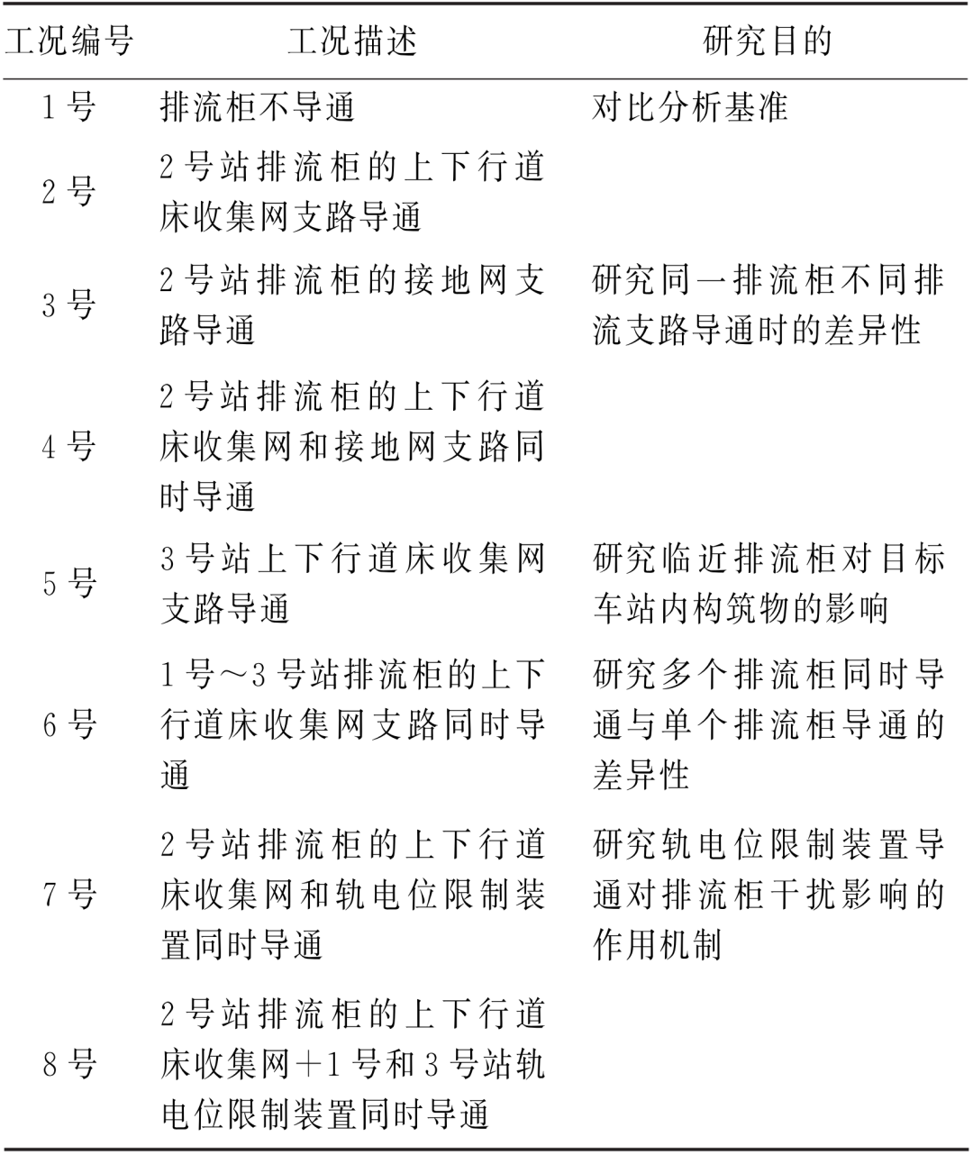 表4 排流柜运行工况及研究目的
