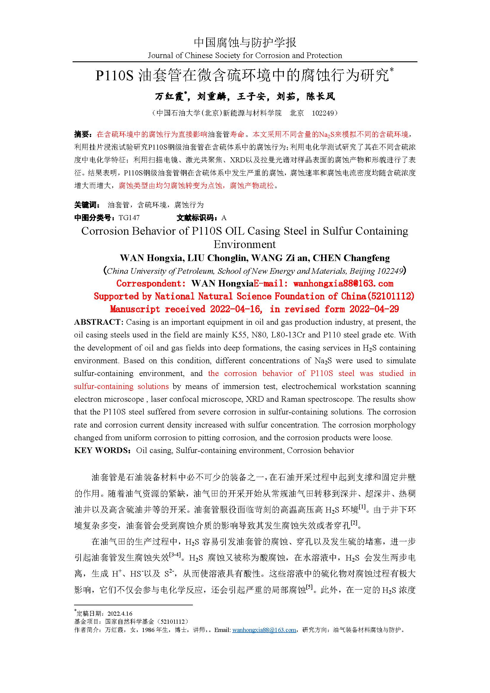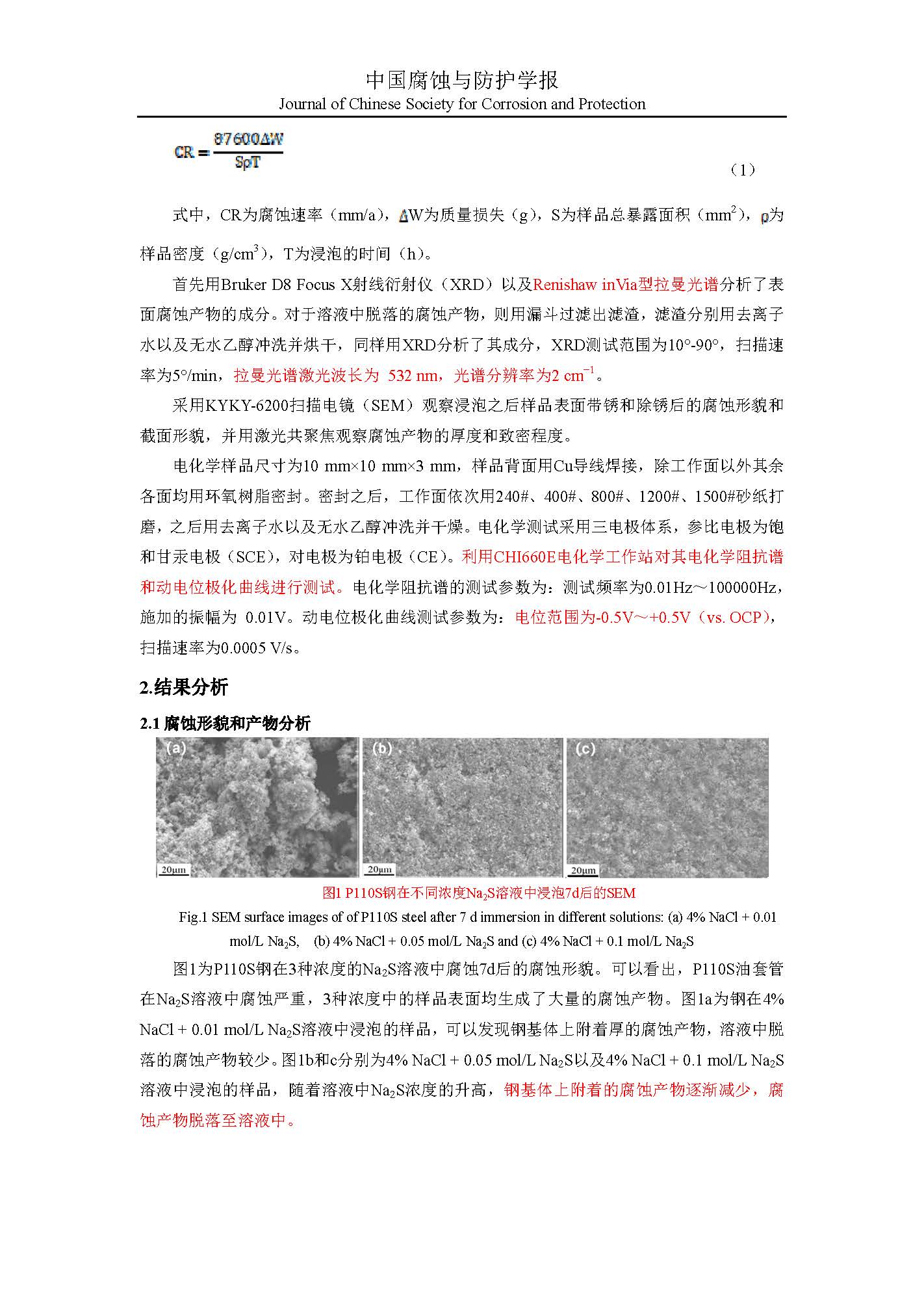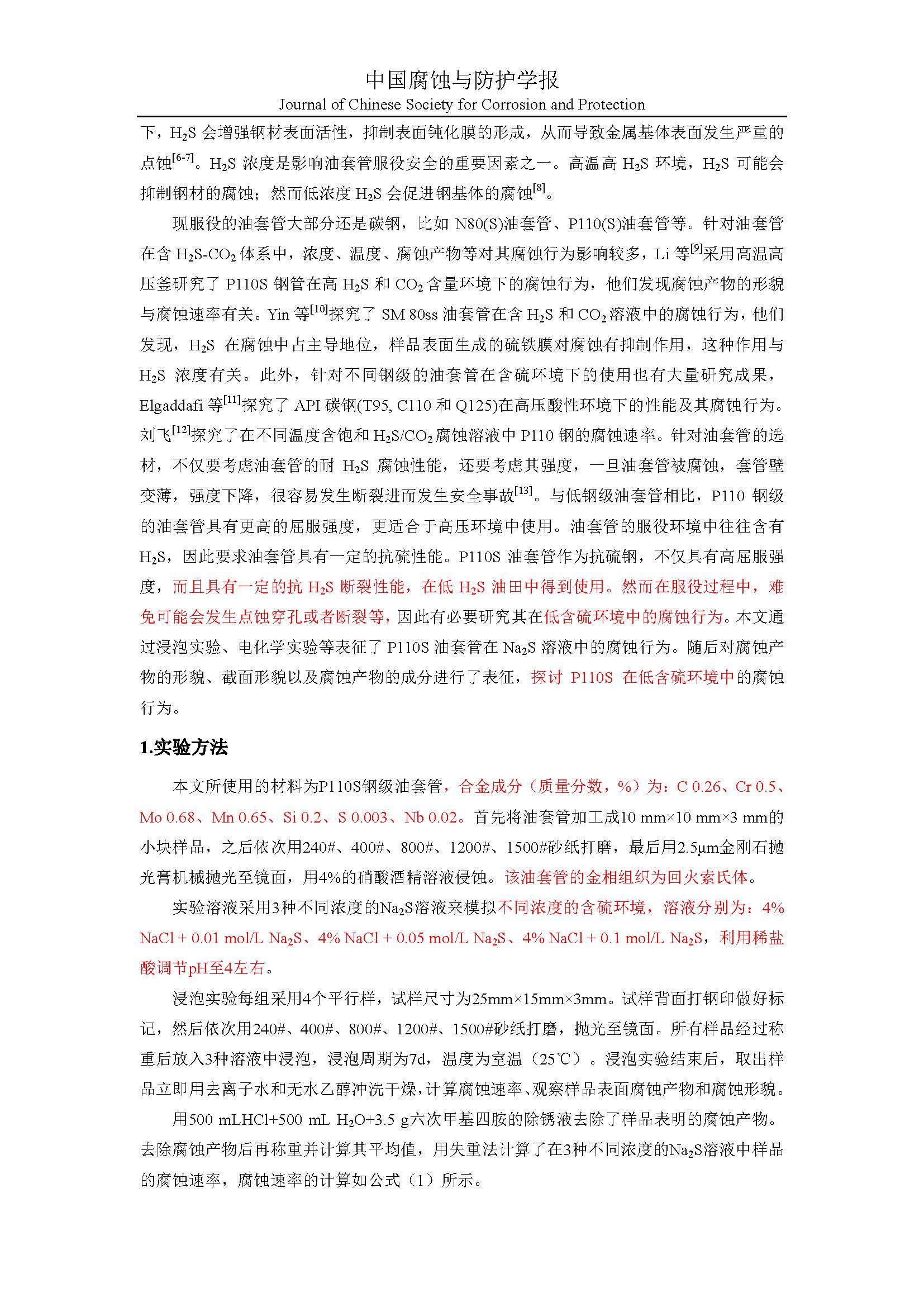 P110S油套管在微含硫环境中的腐蚀行为研究