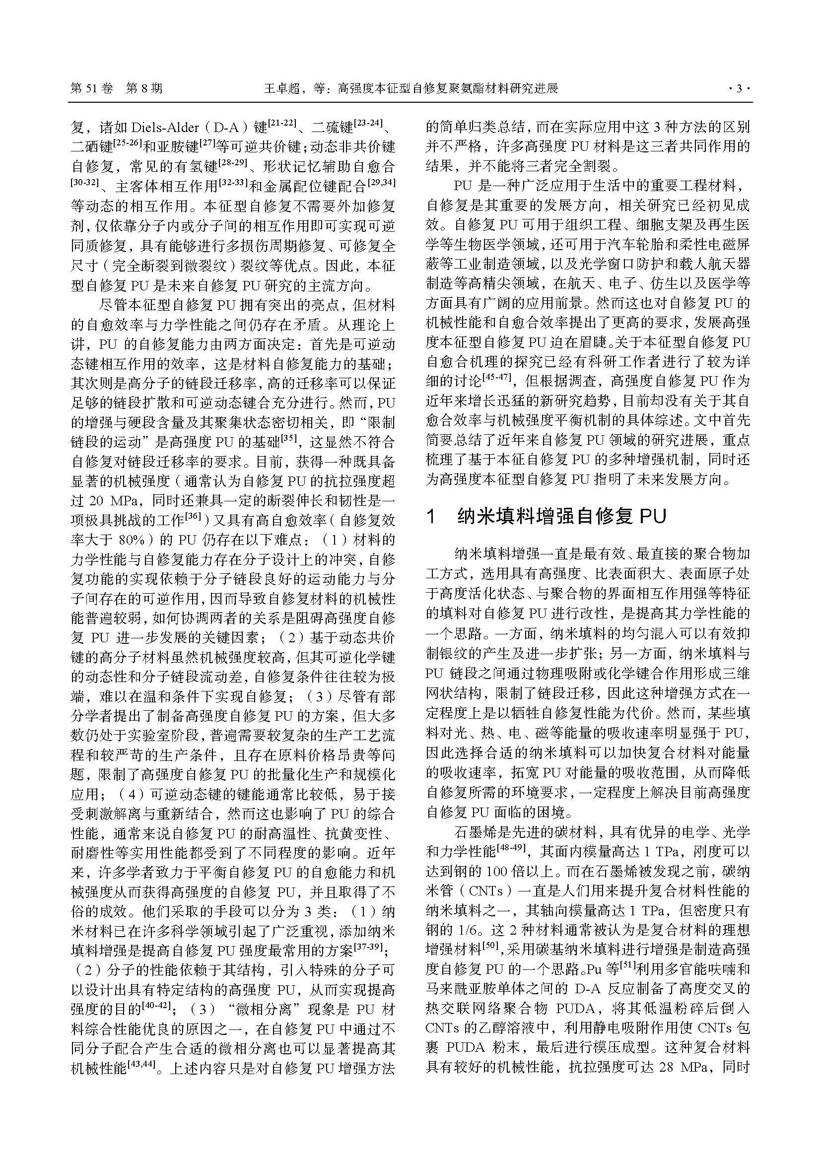 高强度本征型自修复聚氨酯材料研究进展