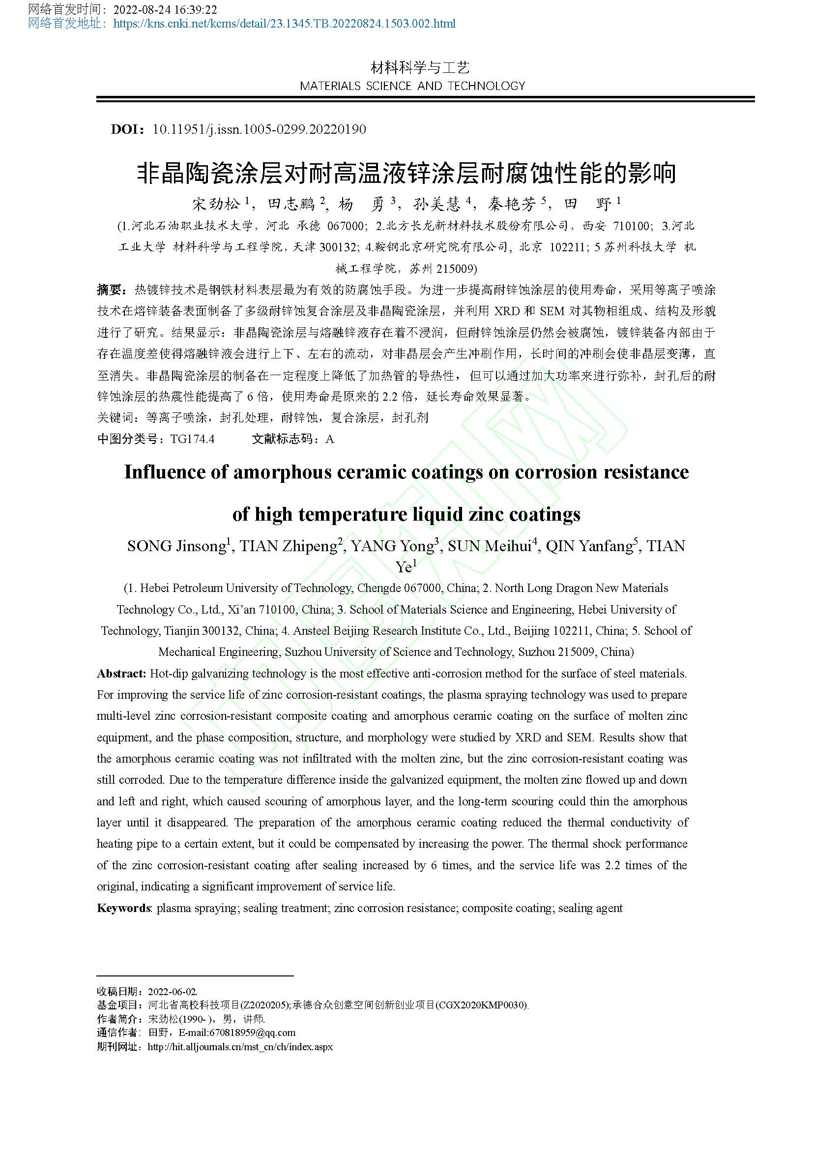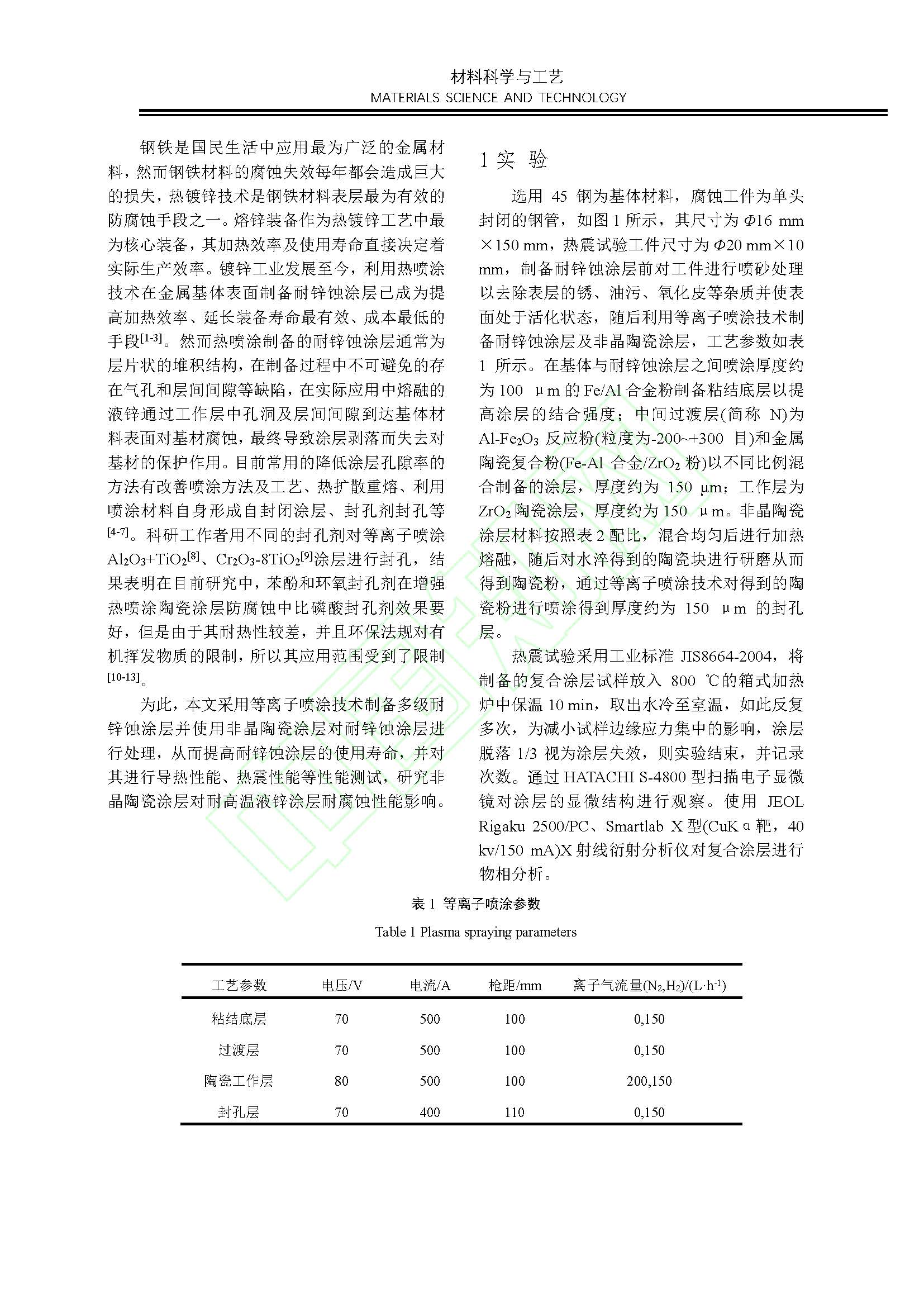 非晶陶瓷涂层对耐高温液锌涂层耐腐蚀性能的影响