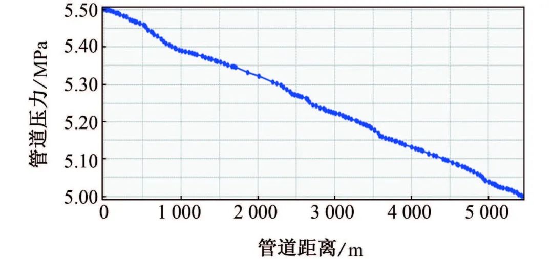 图5 X区块天然气集输管道沿线压力的模拟值