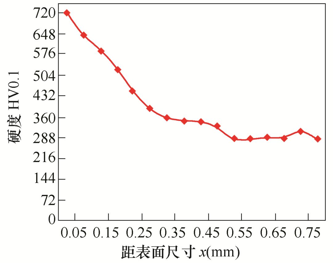 图2 氮碳共渗盐浴复合处理断面梯度硬度