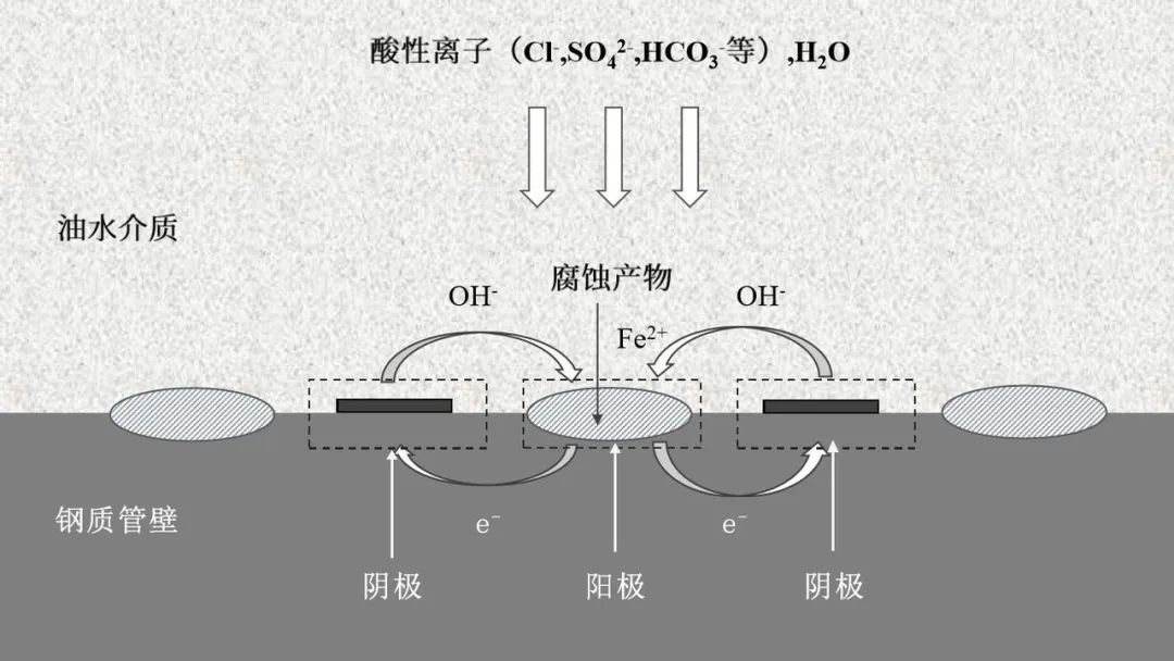 腐蚀产物膜破损机制:由于腐蚀产物膜与金属基体的塑性能力差异,当产生环向压力时,产物膜和基体变形程度不同导致膜破裂,形成电偶腐蚀效应。