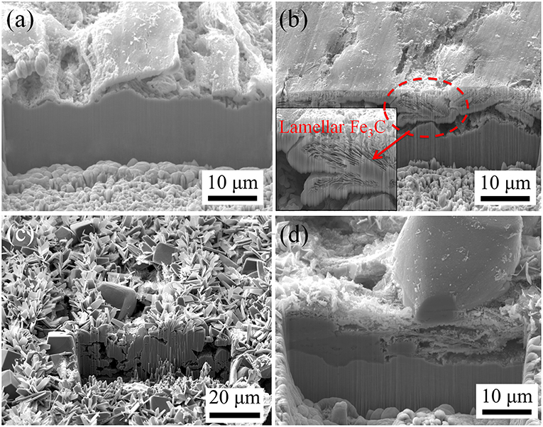 (3)110℃附近,形成掺杂Fe3O4的FeCO3粗大结晶,局部腐蚀严重;