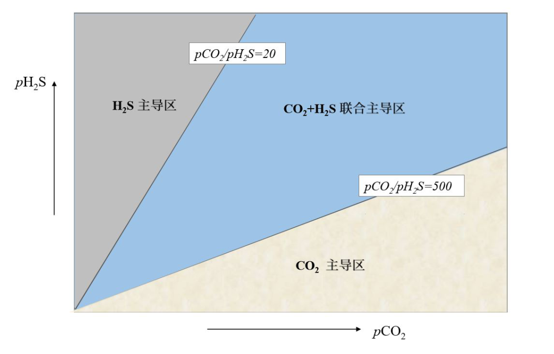 CO2和H2S对腐蚀的总体影响与两者的分压比有关: