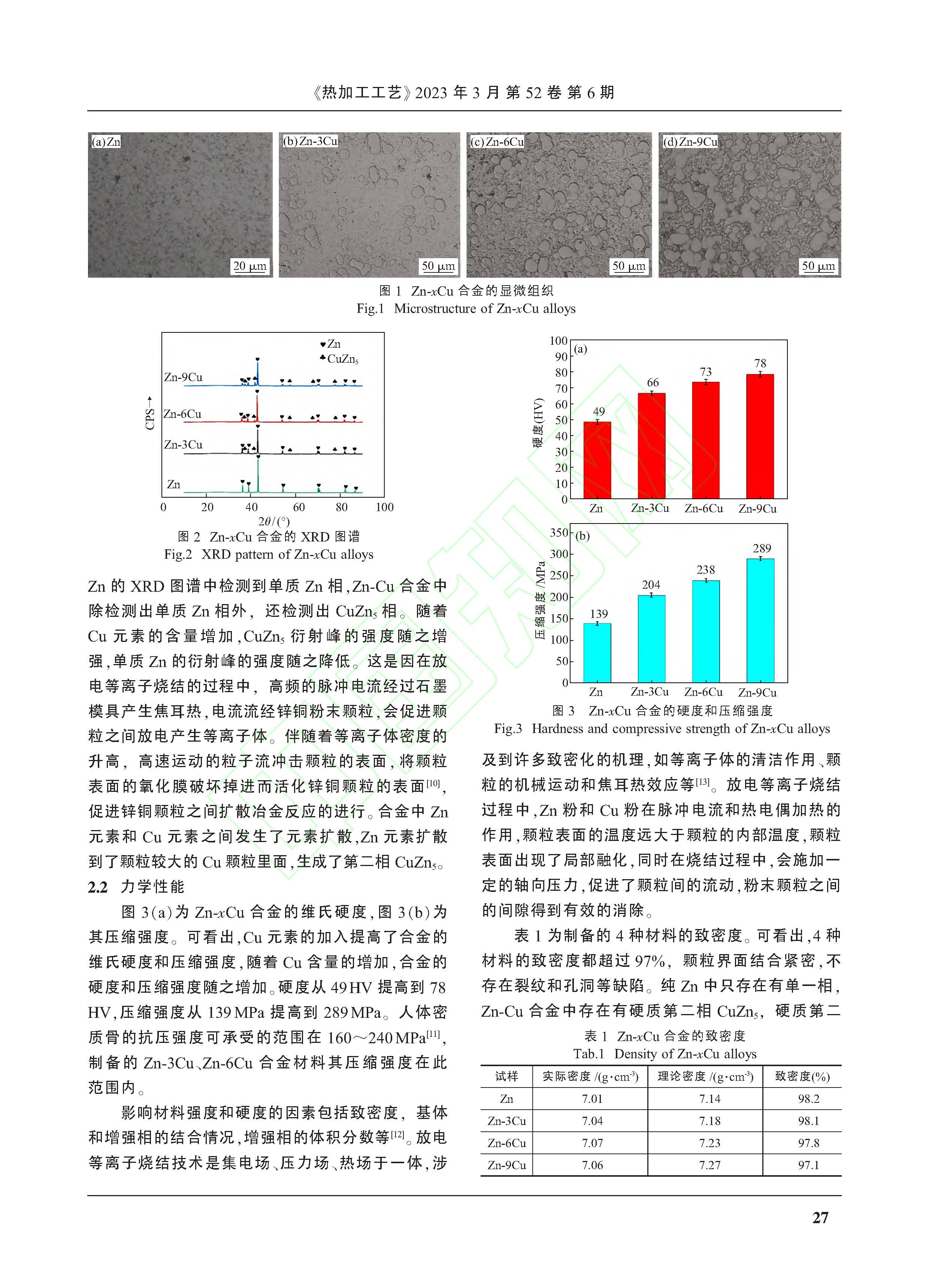 生物可降解Zn-Cu合金的组织及其性能研究