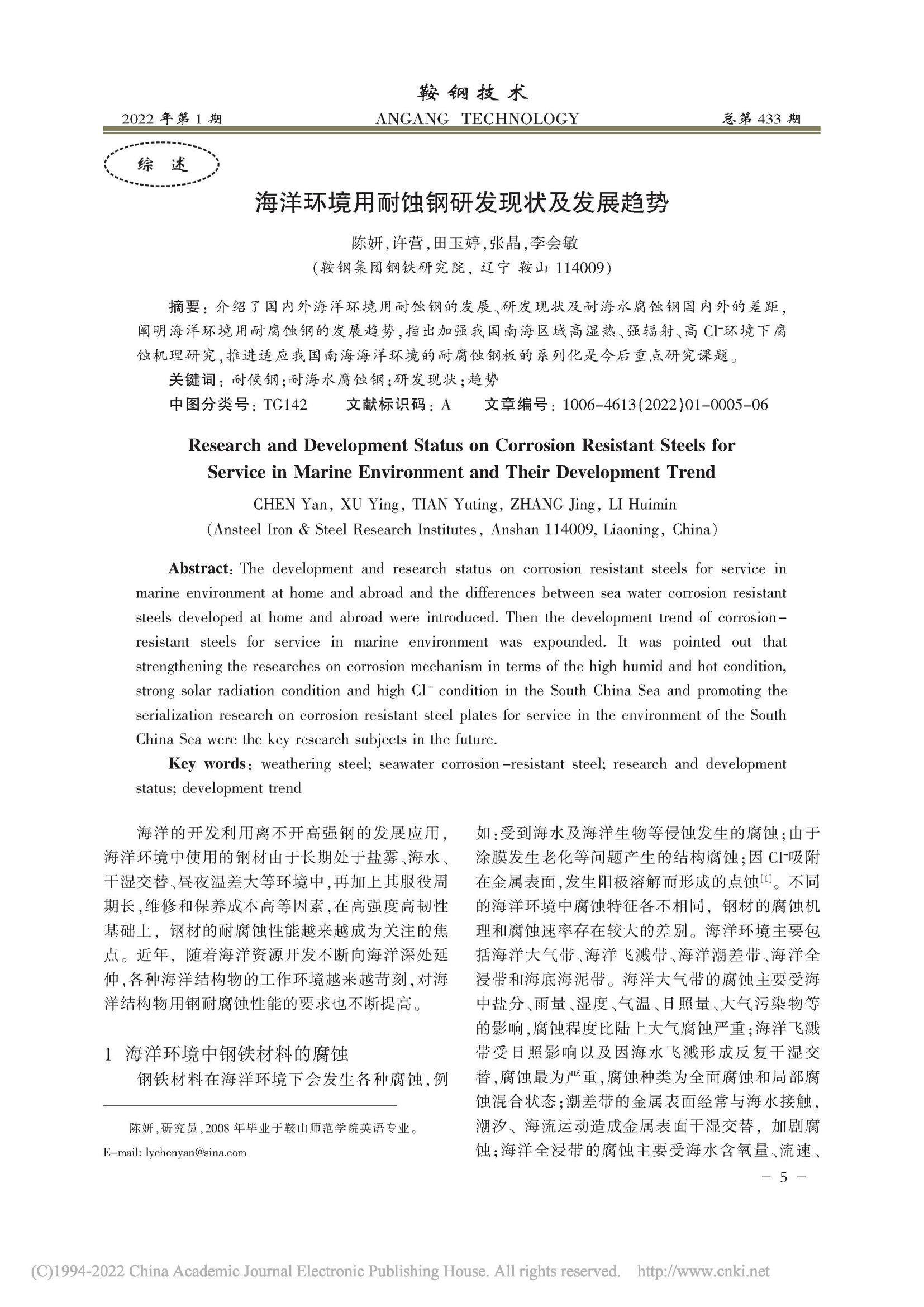 海洋环境用耐蚀钢研发现状及发展趋势