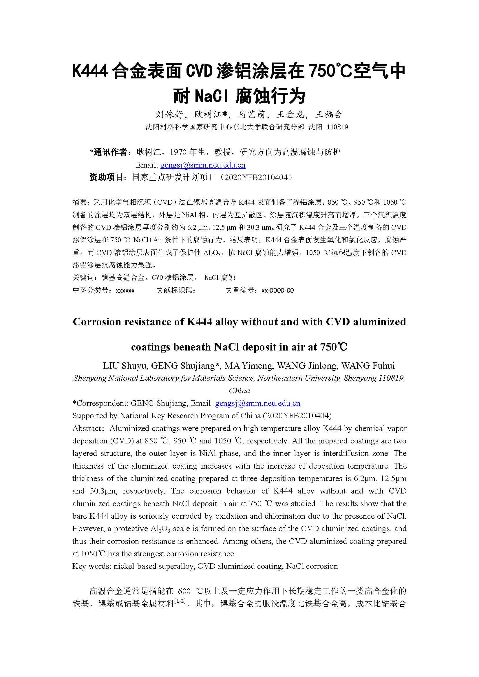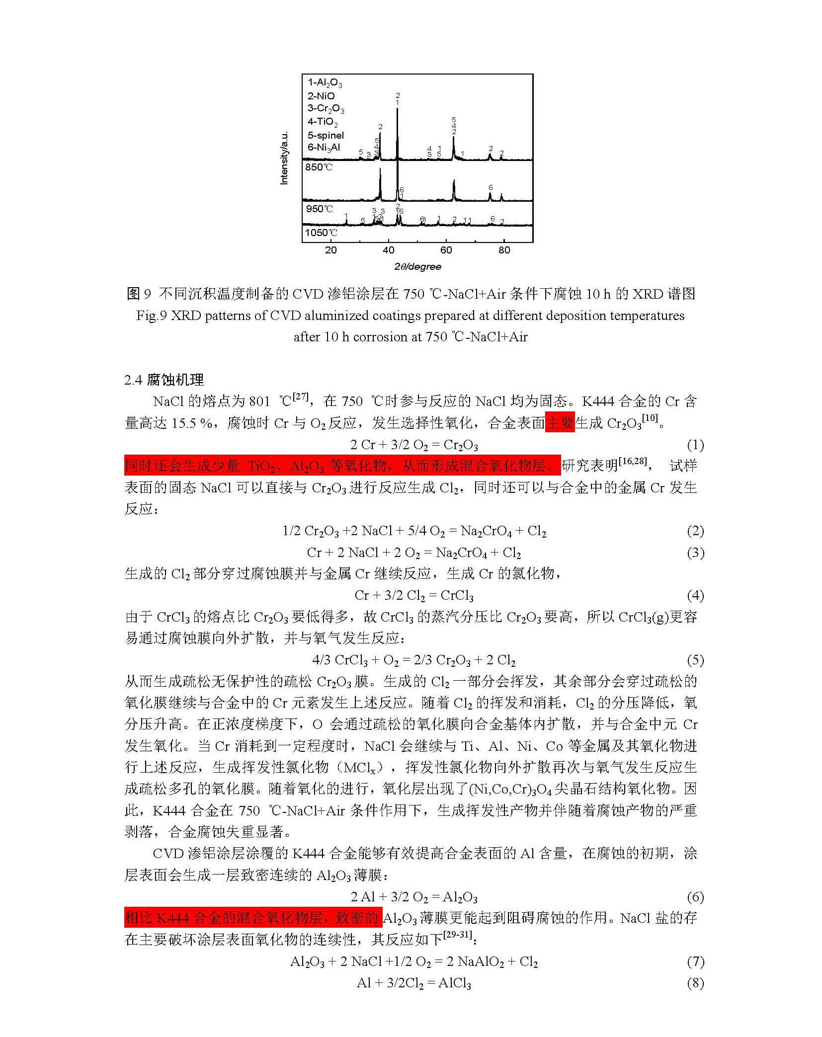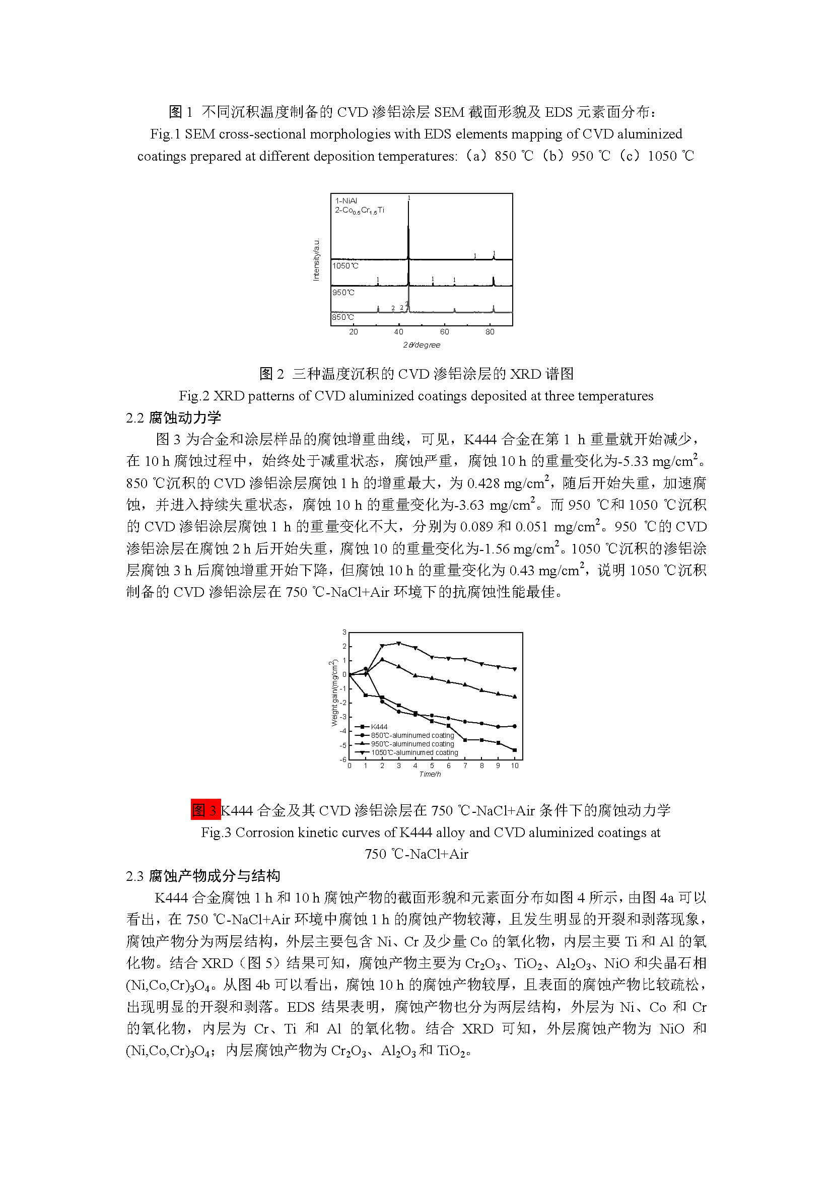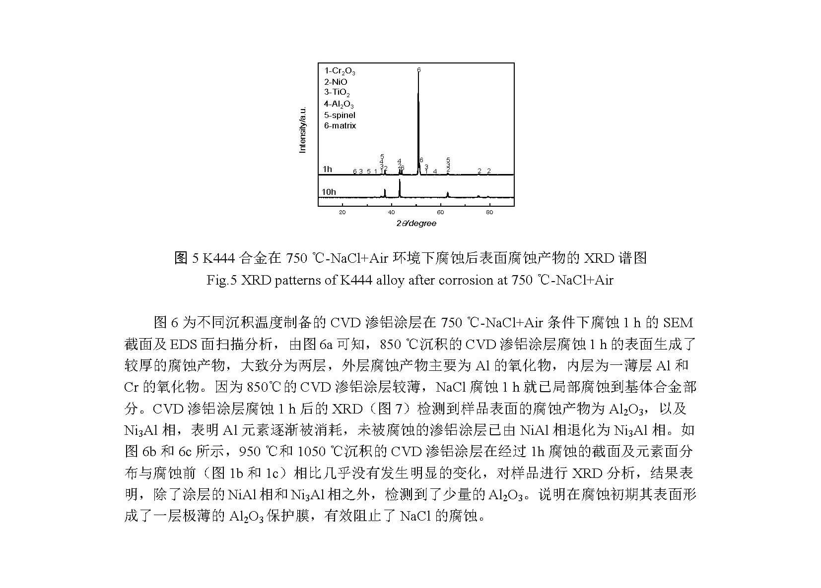 K444合金表面CVD渗铝涂层在750℃空气中耐NaCl腐蚀行为