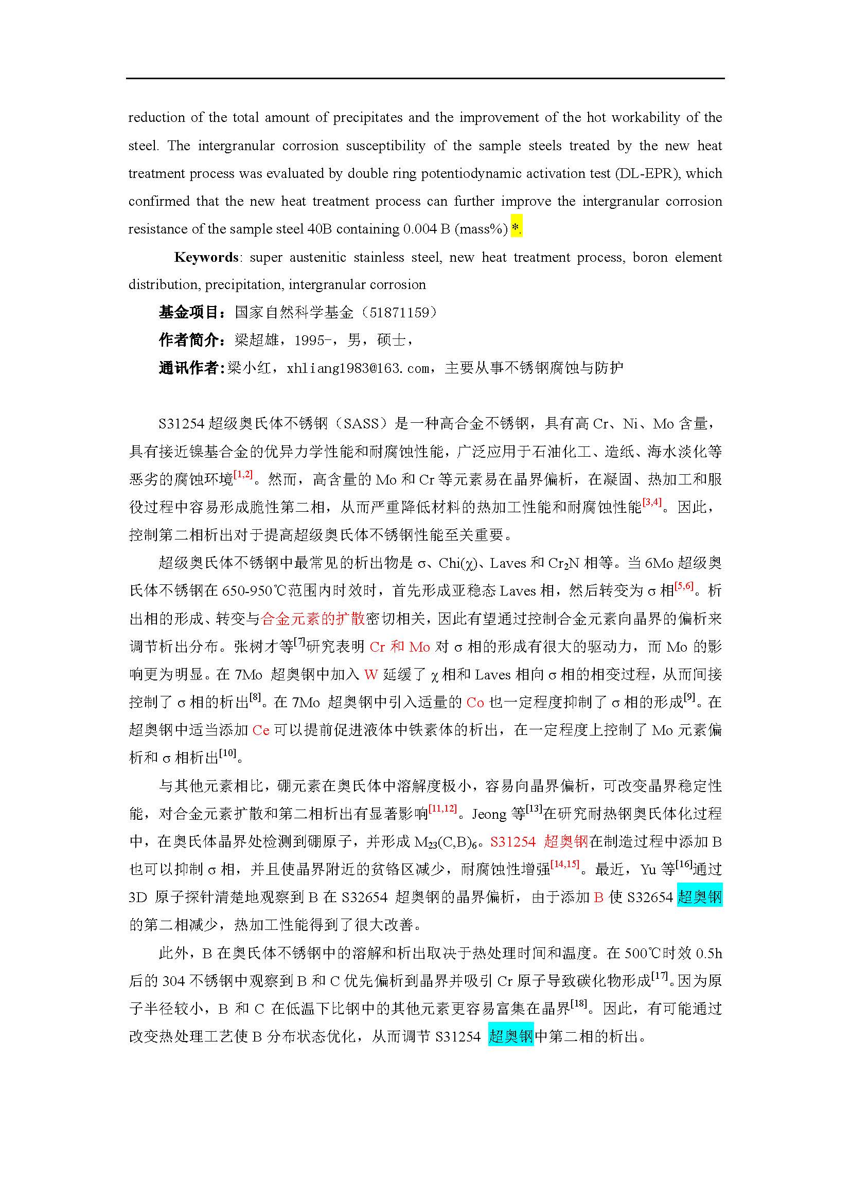 新热处理工艺调控B分布对S31254超级奥氏体不锈钢第二相析出和耐蚀性能的影响