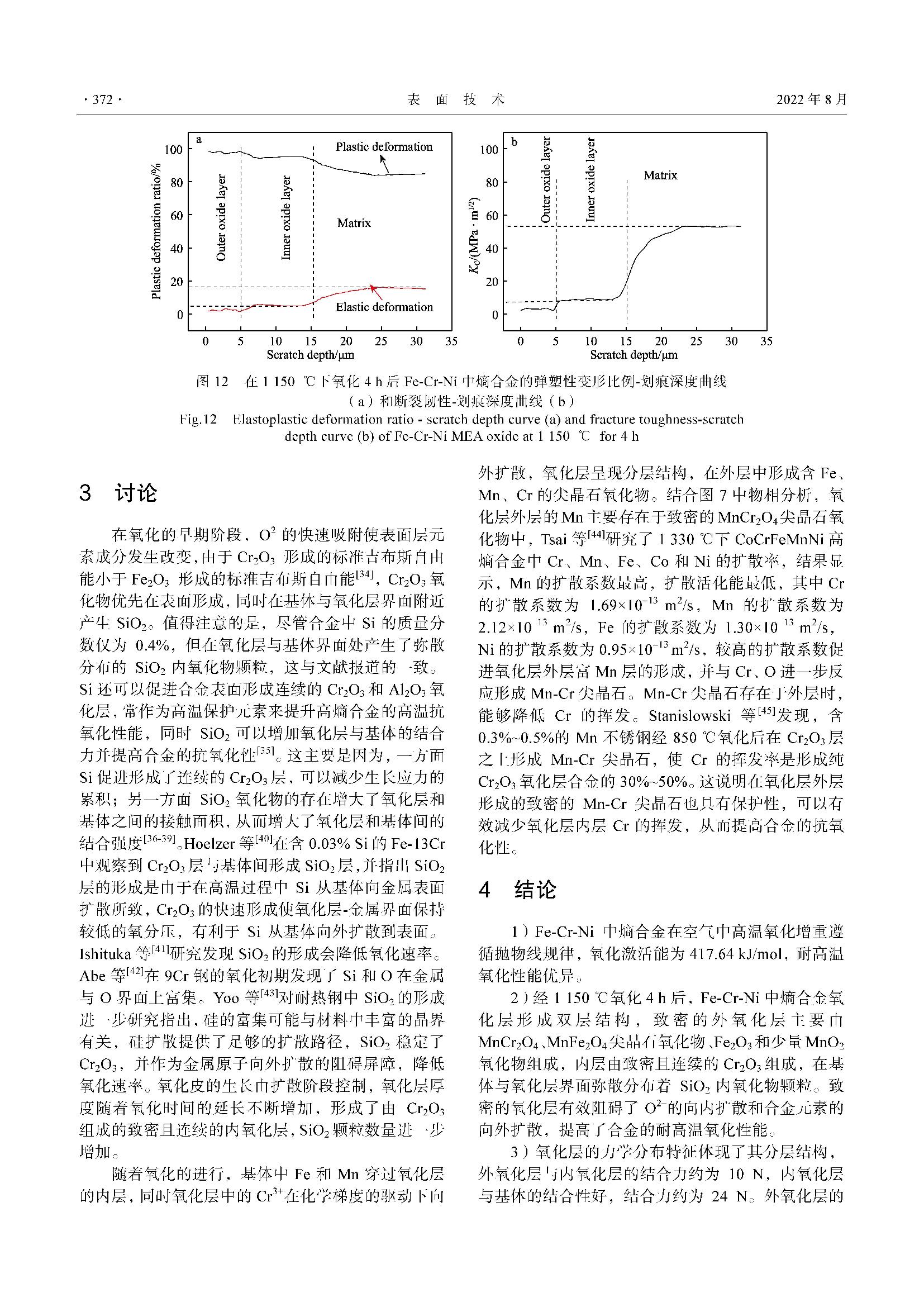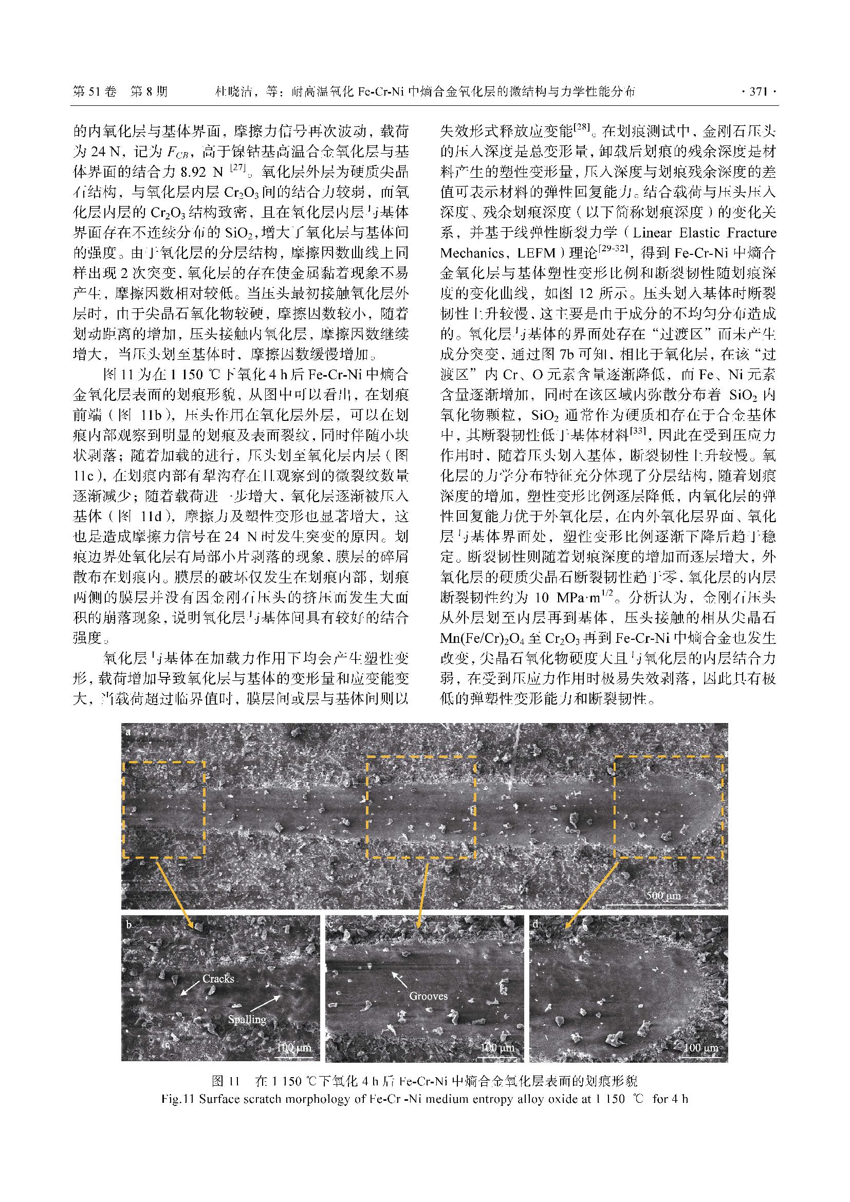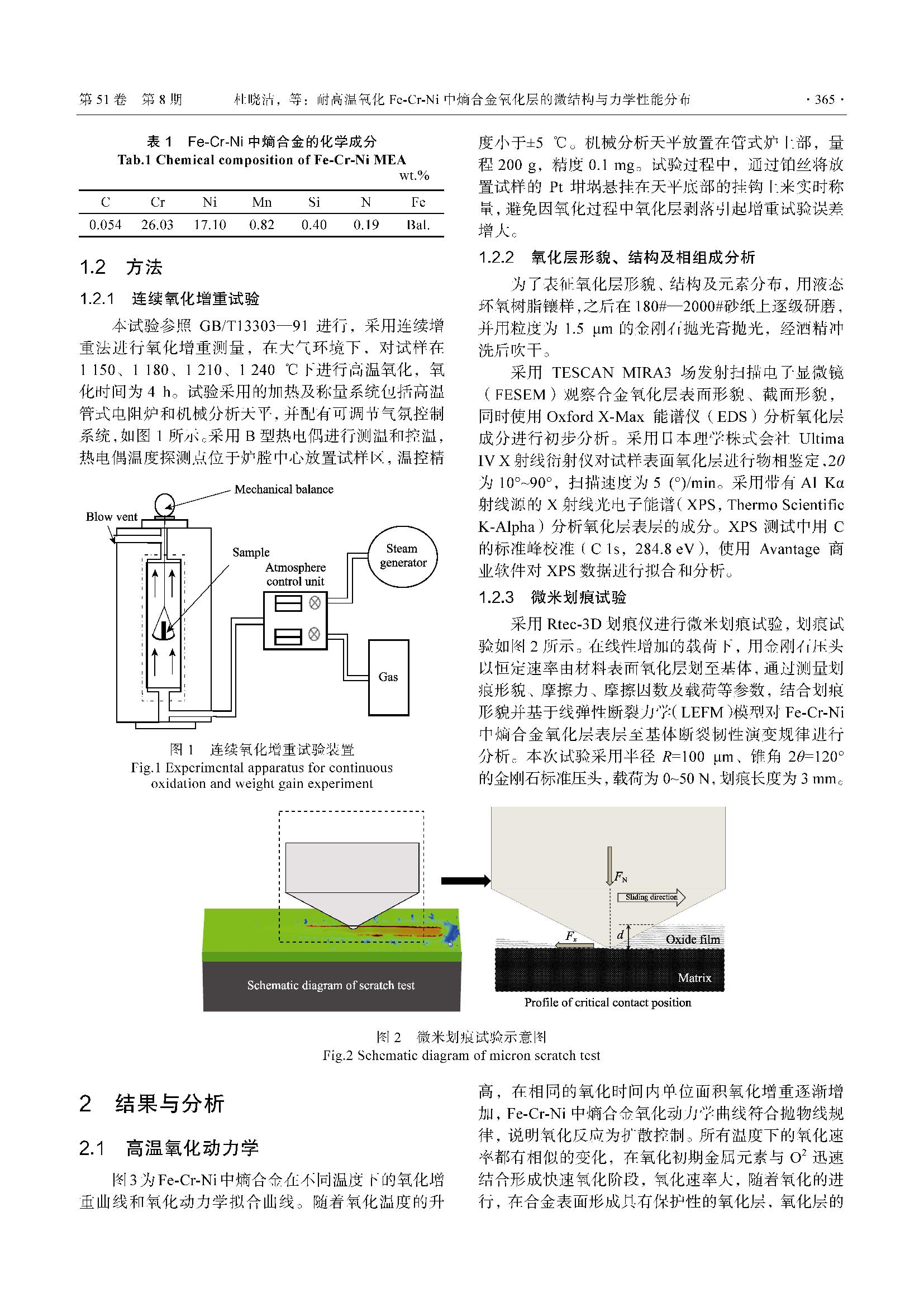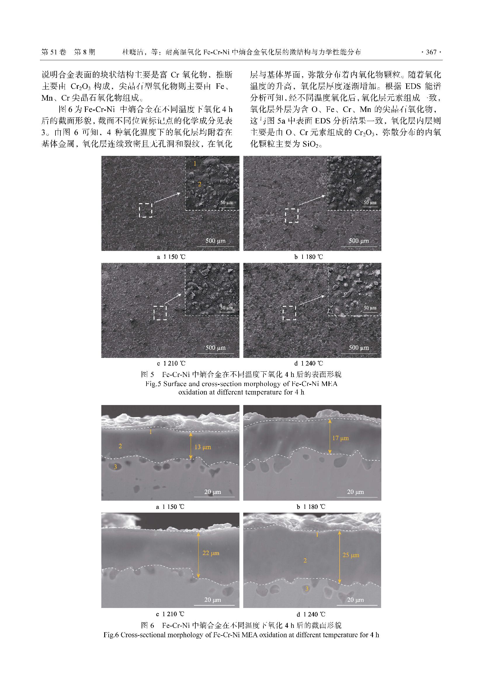 耐高温氧化Fe-Cr-Ni 中熵合金氧化层的微结构与力学性能分布