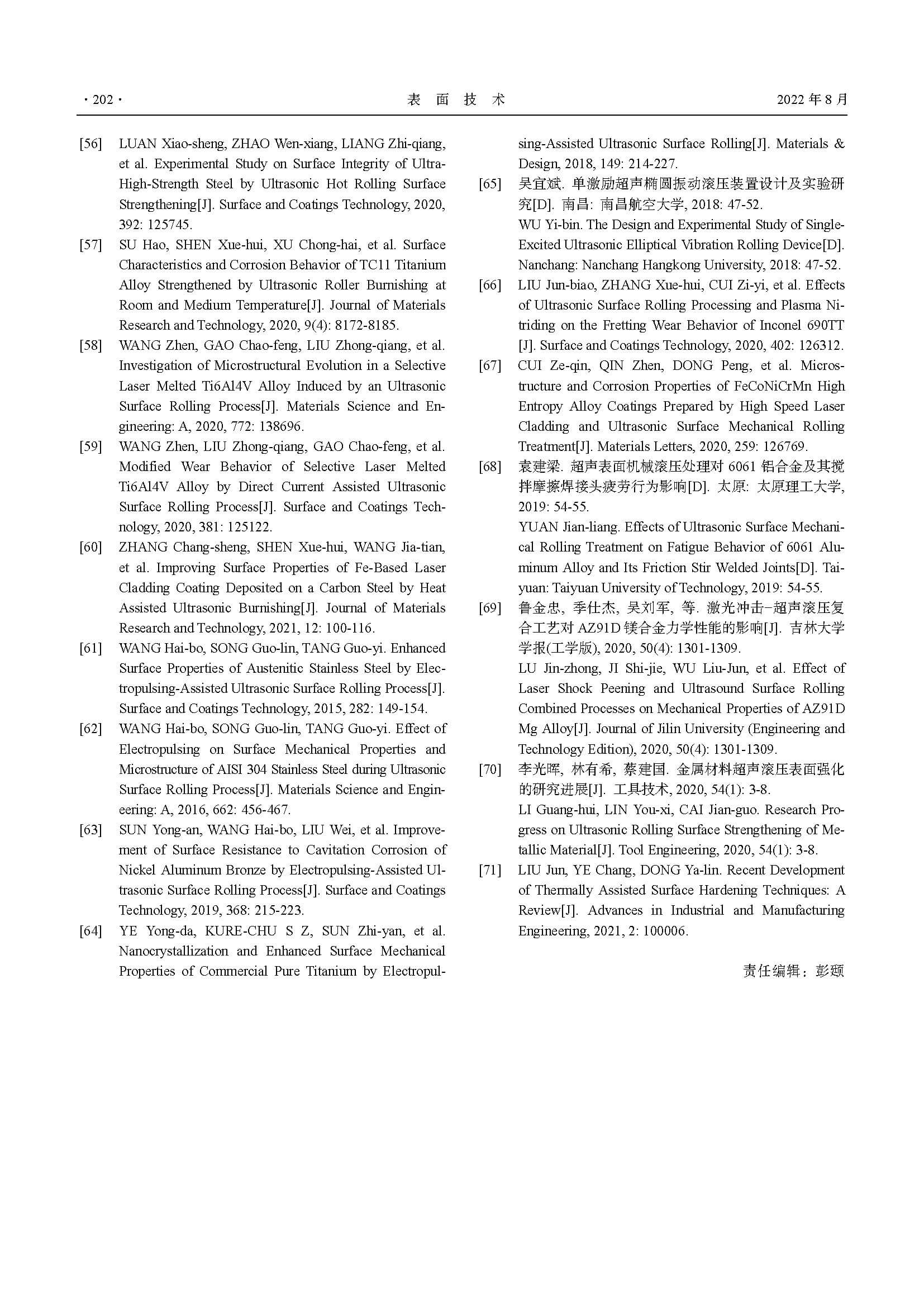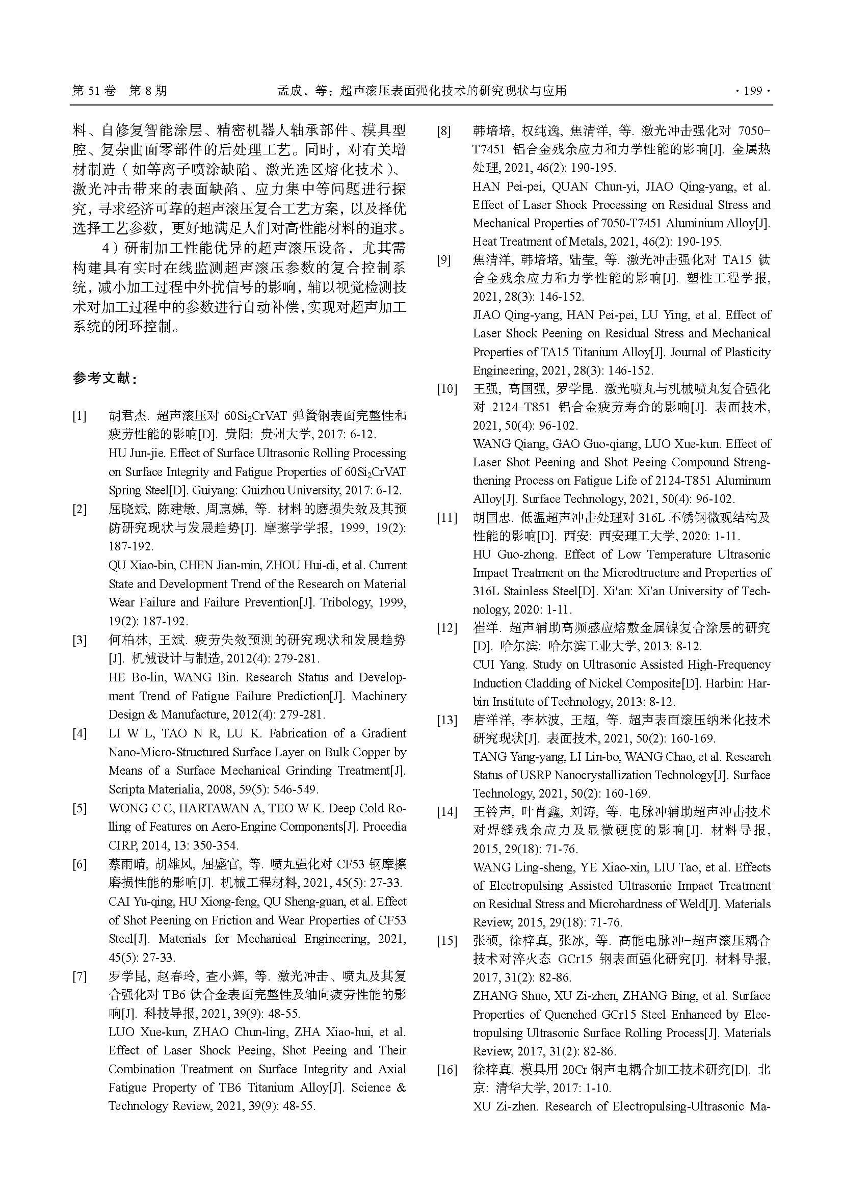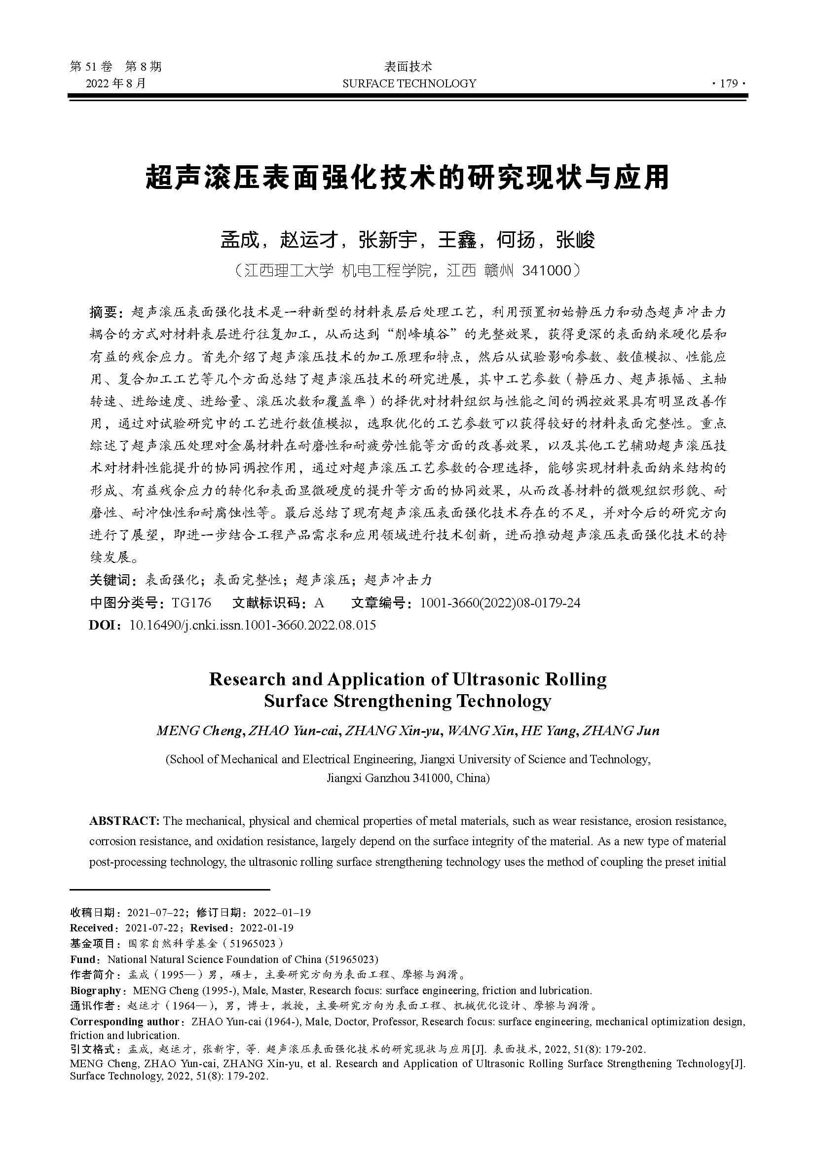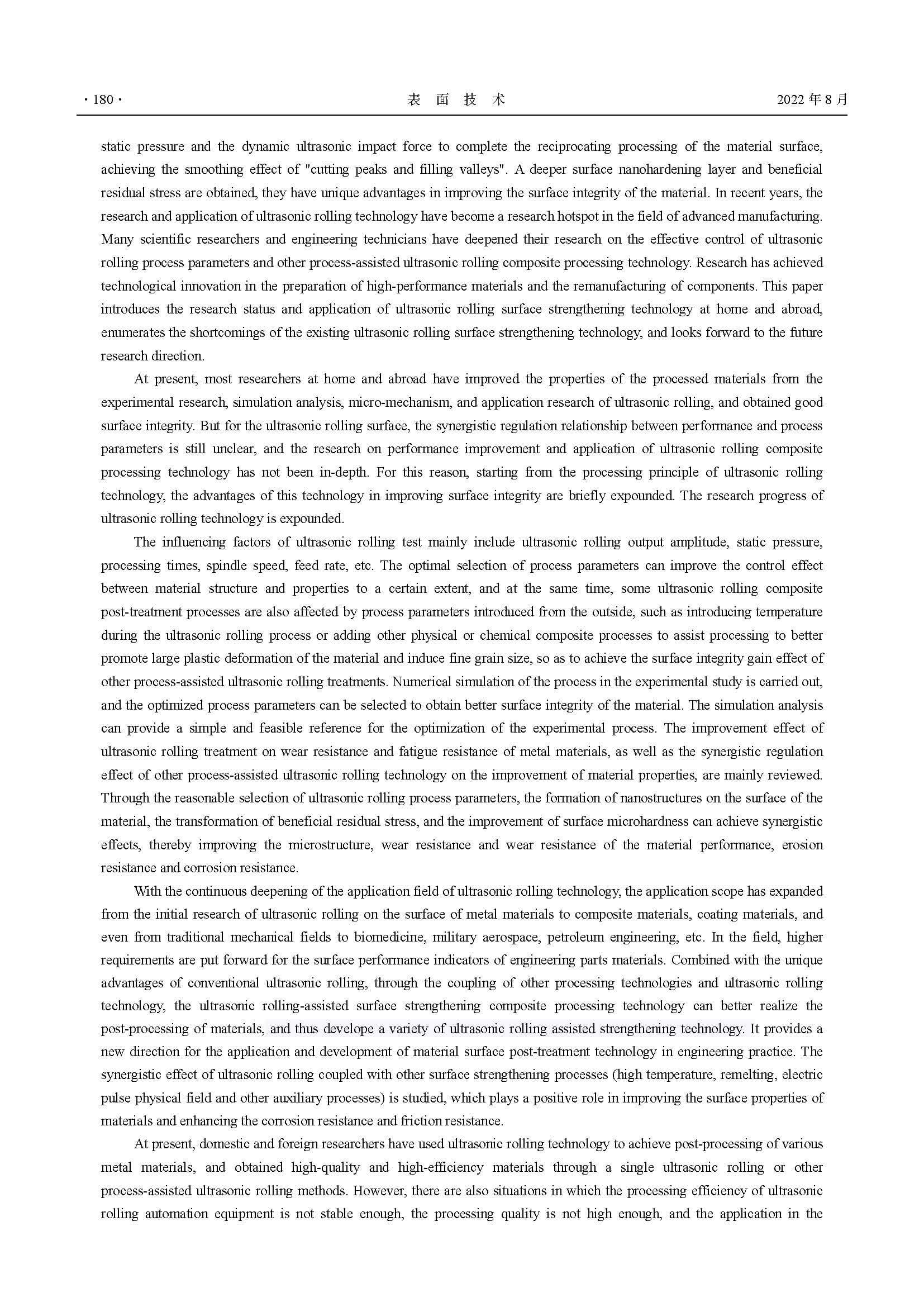 超声滚压表面强化技术的研究现状与应用