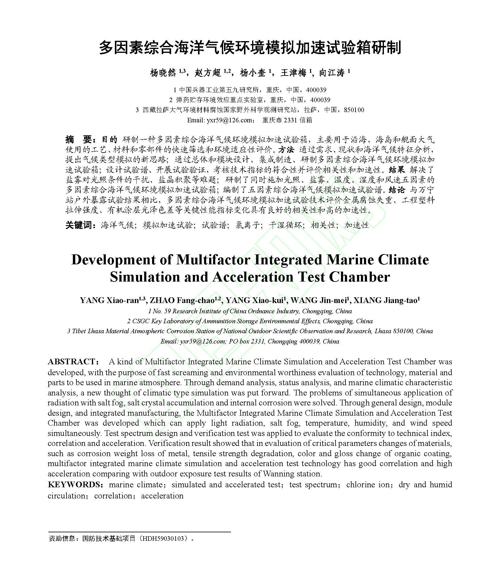多因素综合海洋气候环境模拟加速试验箱研制