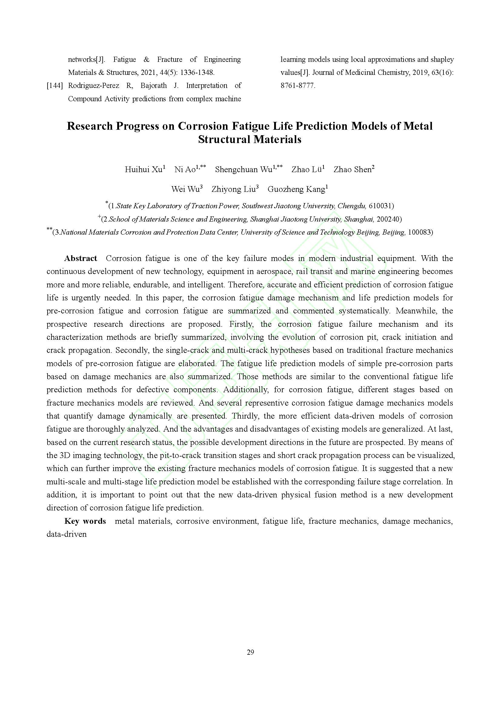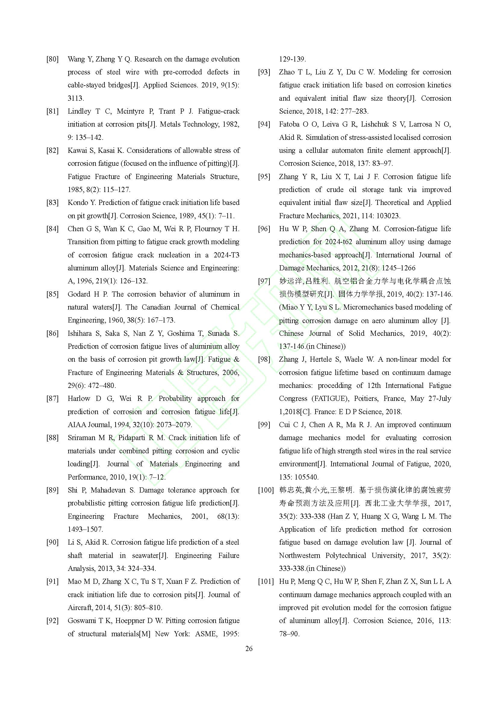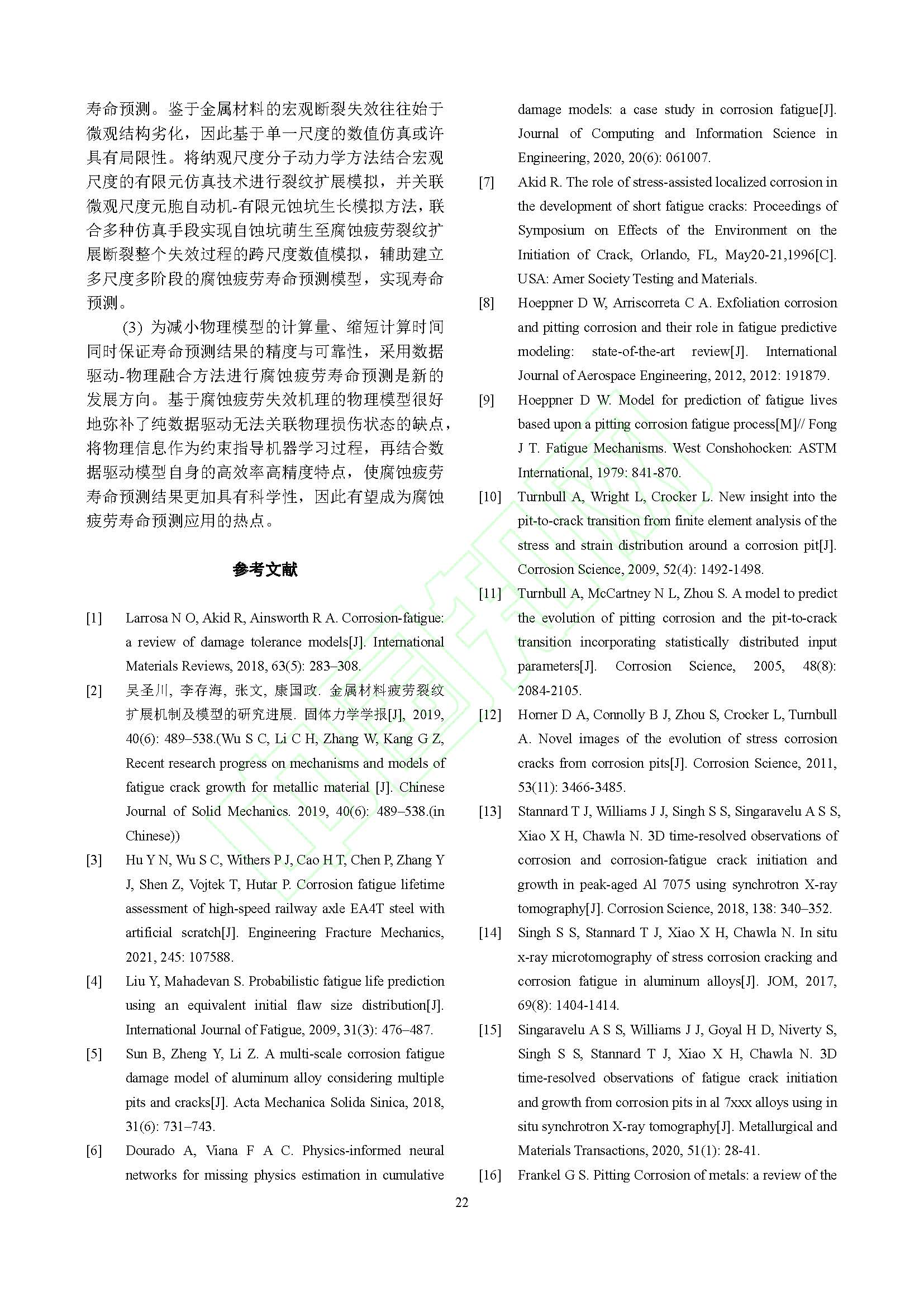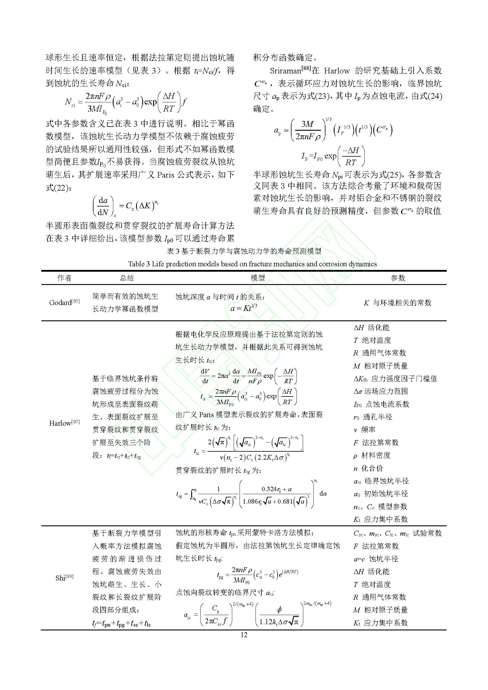 金属结构材料腐蚀疲劳寿命预测模型的研究进展