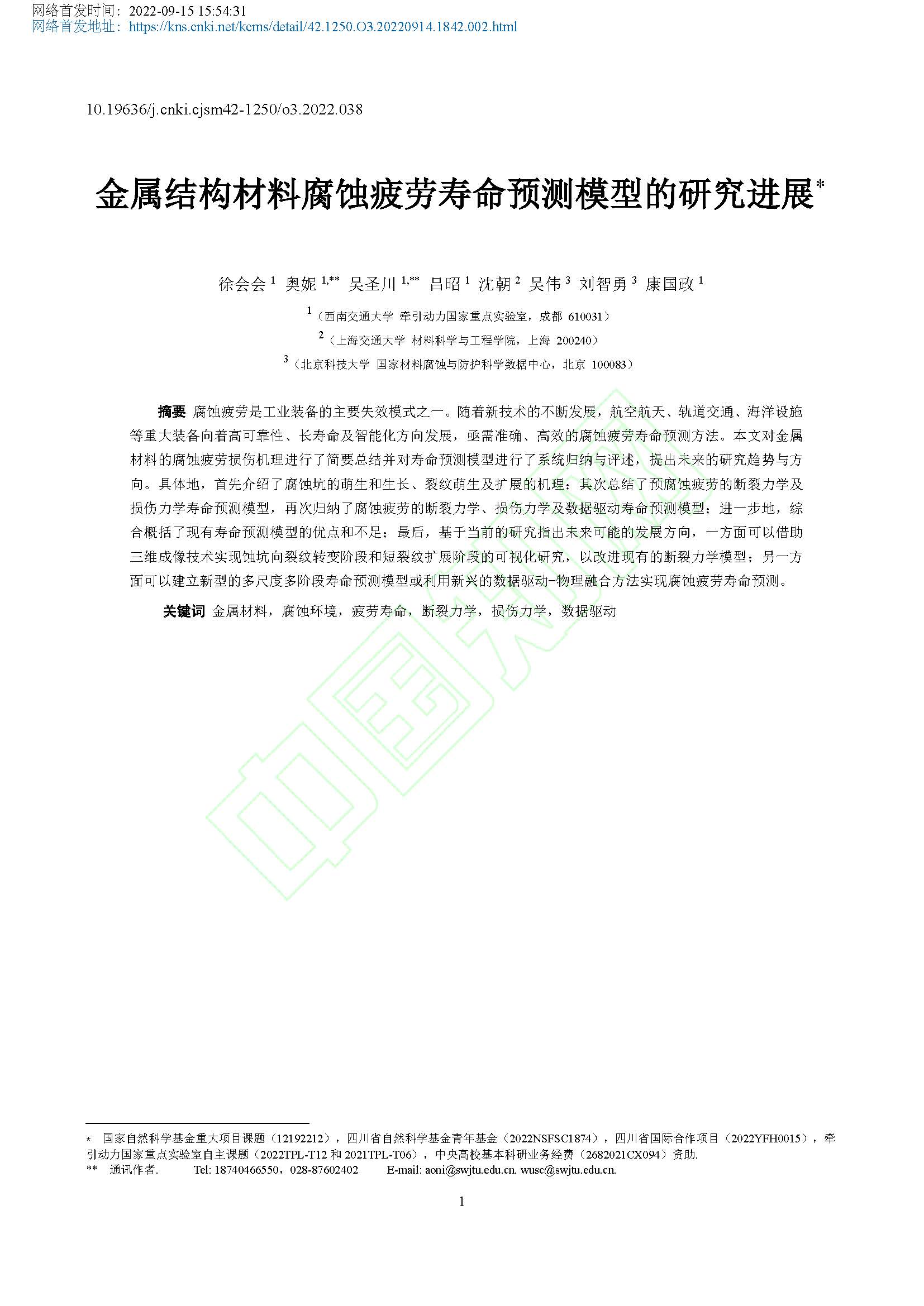 作者:徐会会,奥妮,吴圣川,吕昭,沈朝,吴伟,刘智勇,康国政