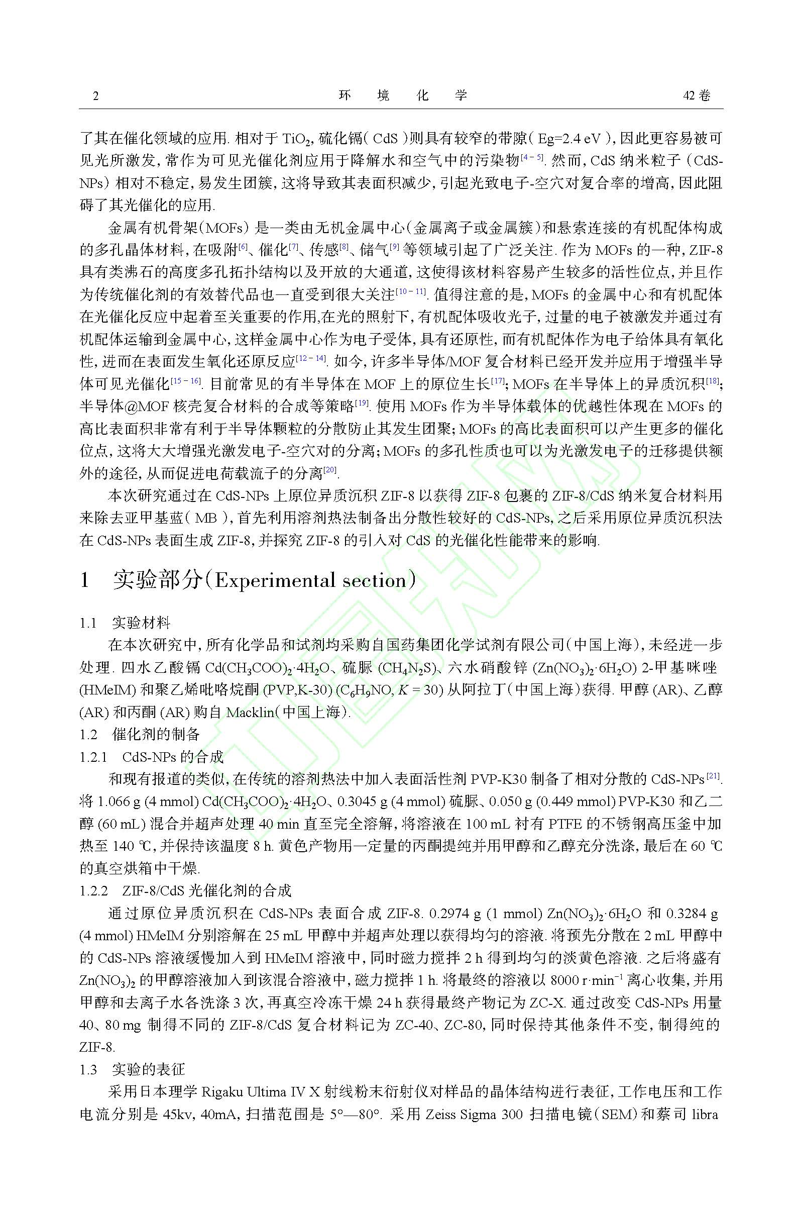 ZIF-8_CdS复合材料对亚甲基蓝的光催化降解