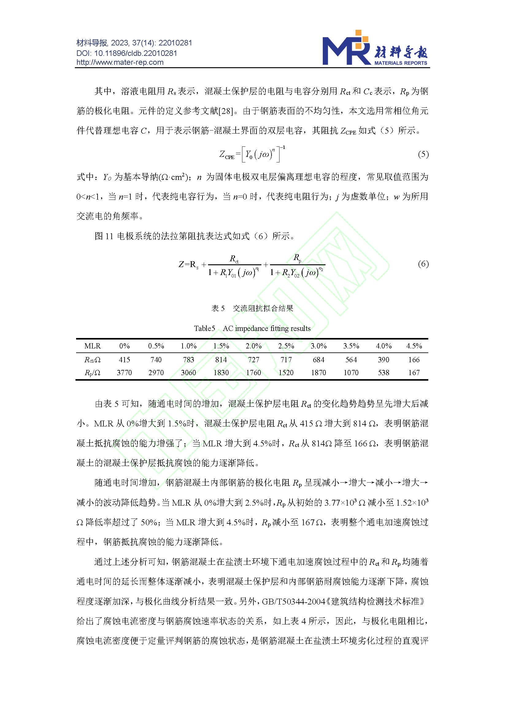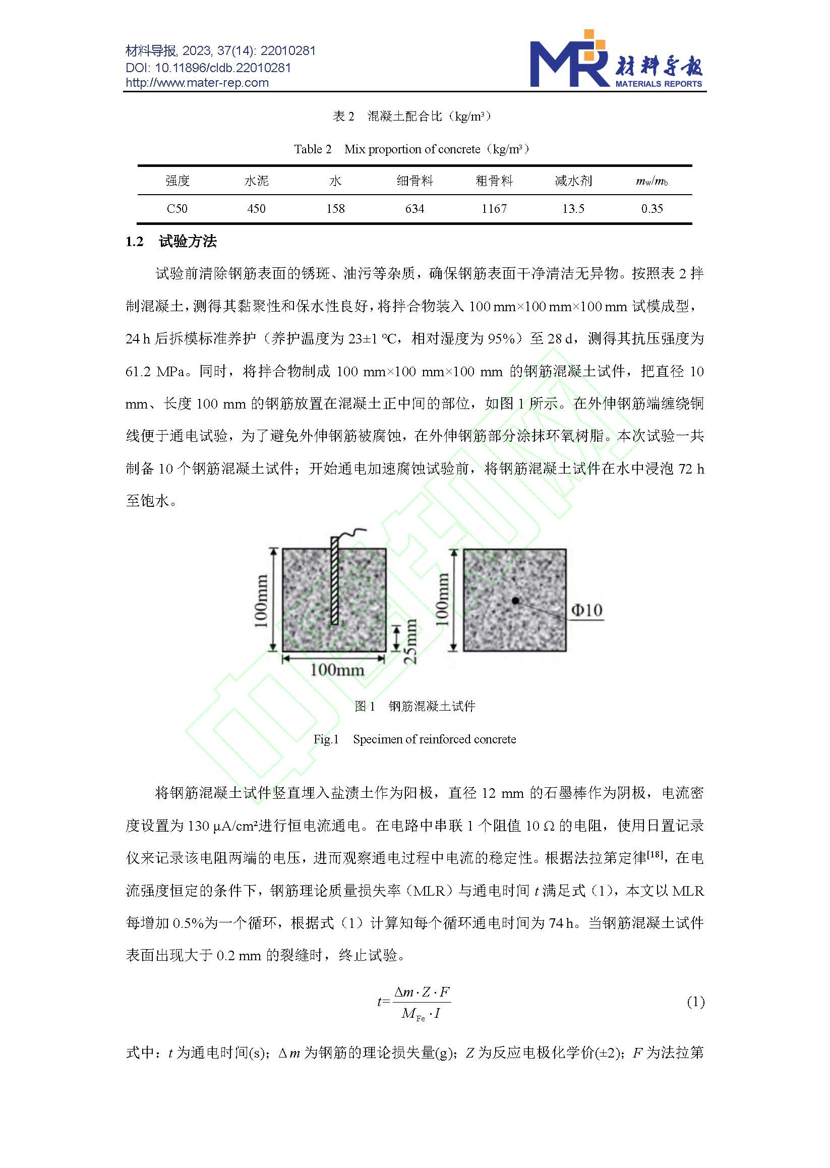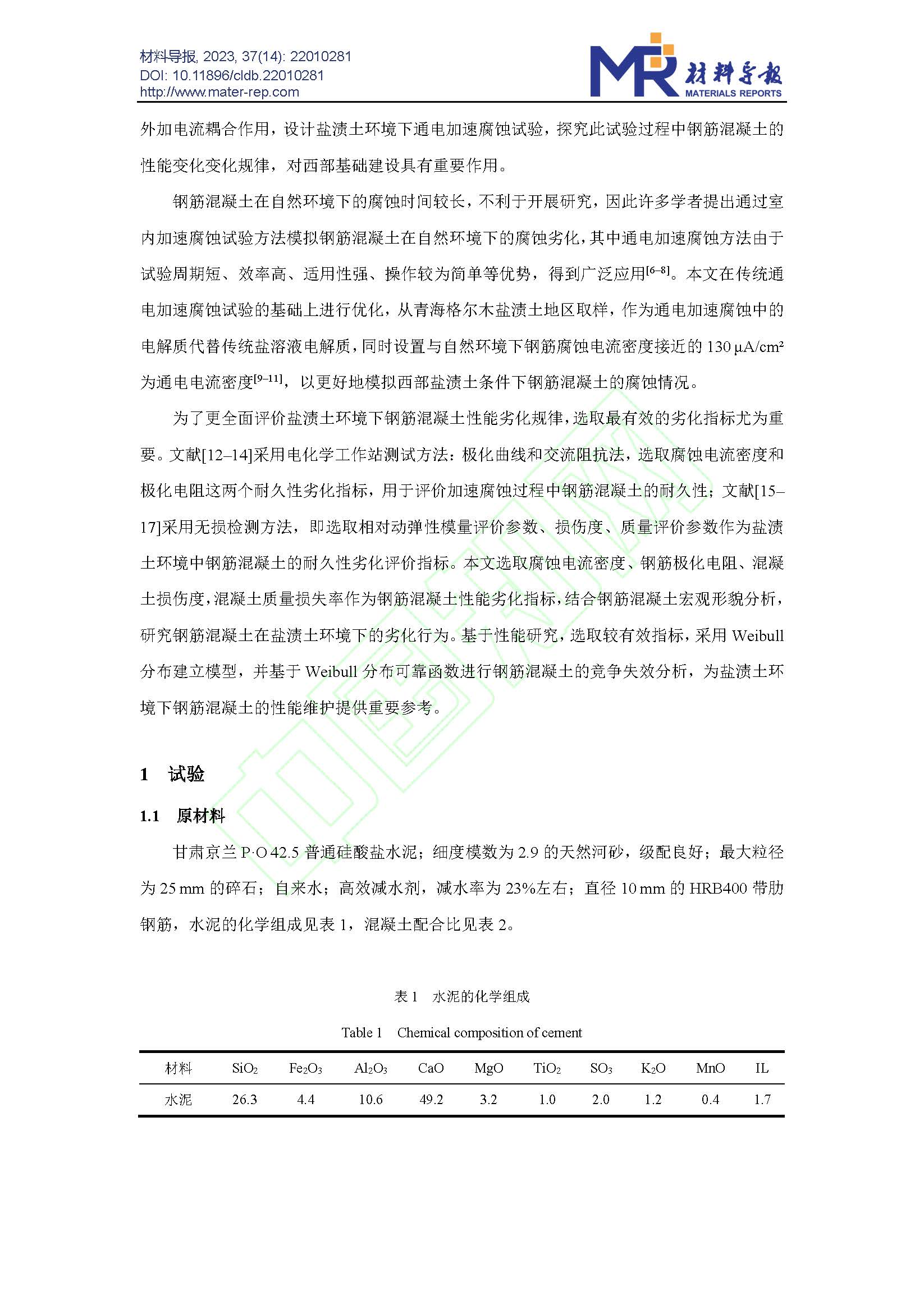 Cl-浓度对钢筋混凝土在土壤中腐蚀行为的影响