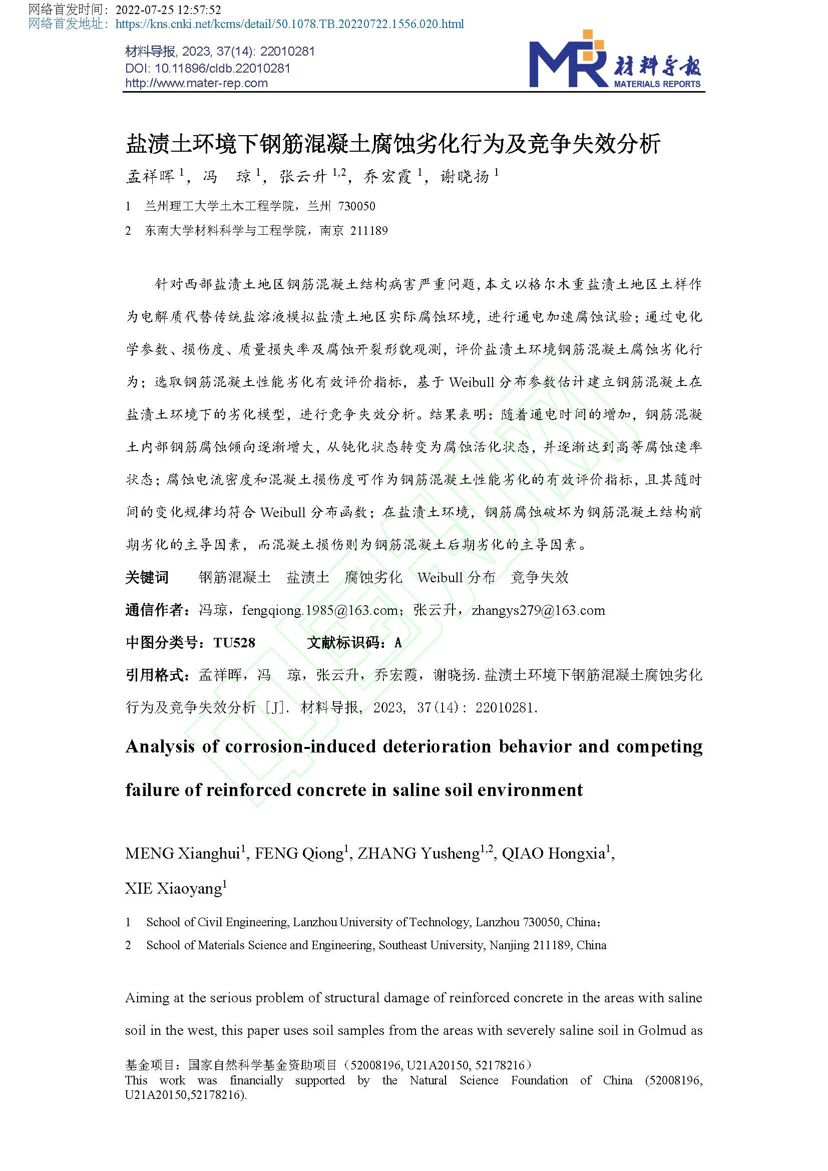 盐渍土环境下钢筋混凝土腐蚀劣化行为及竞争失效分析