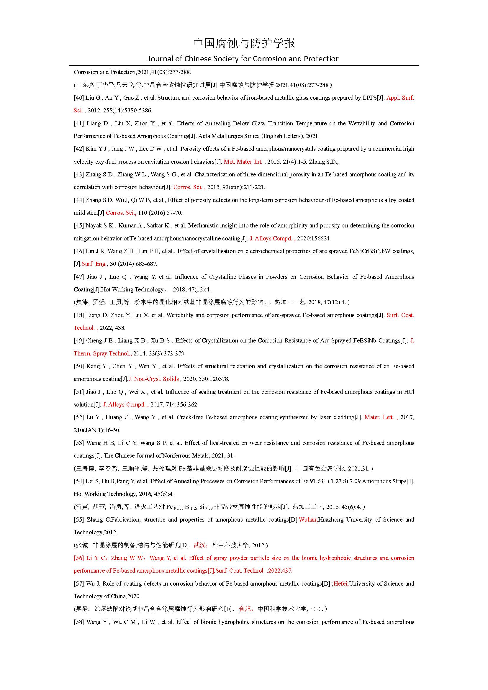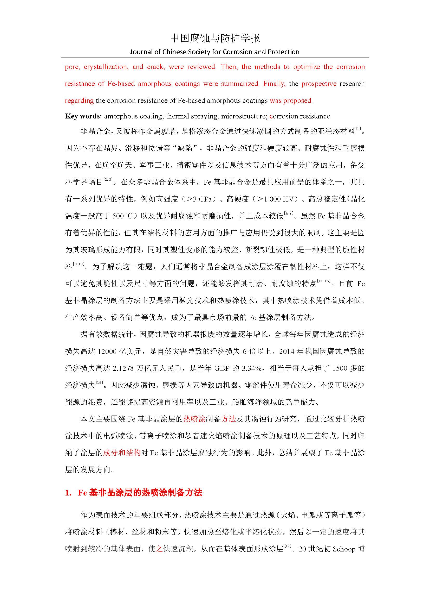 热喷涂Fe基非晶涂层的耐腐蚀性的研究及优化
