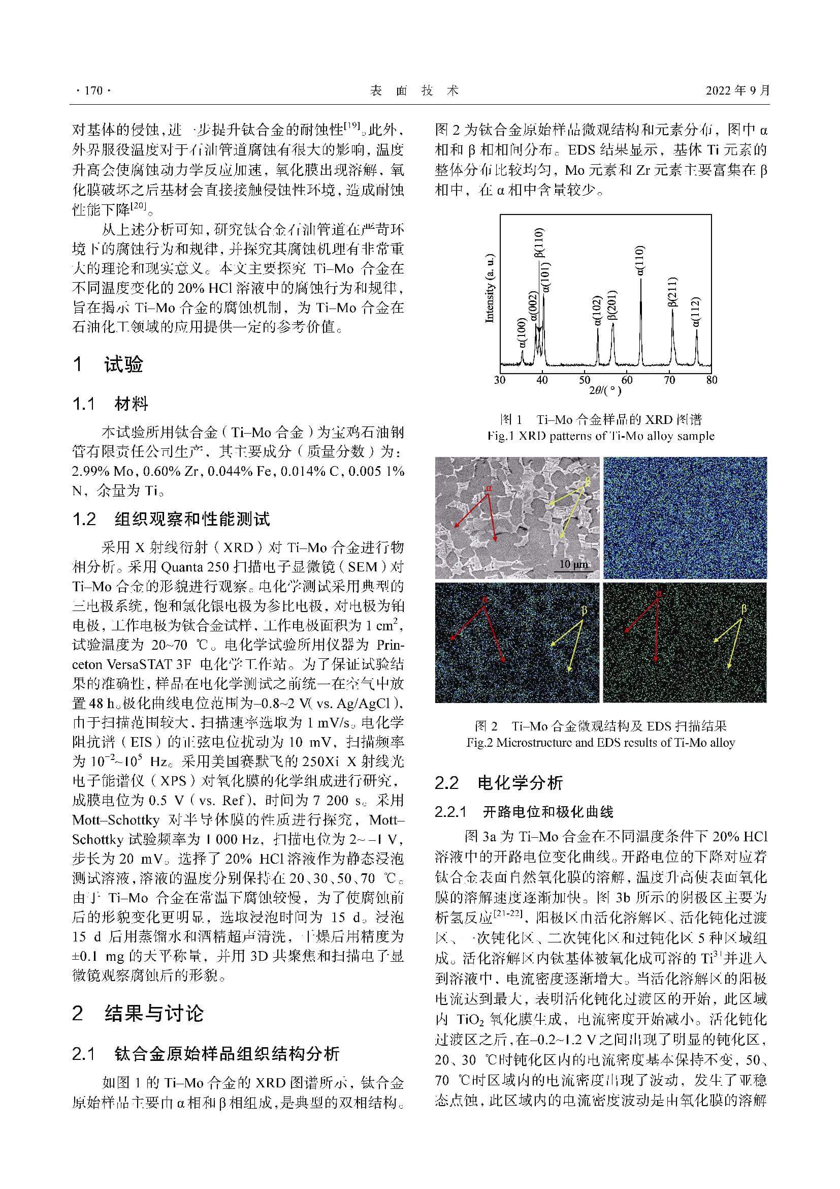 酸性介质环境中温度对Ti–Mo合金耐蚀性的影响