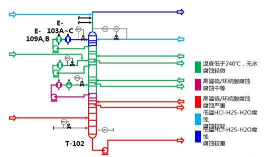 常减压装置低温部位的腐蚀问题,受原料来源多变、工艺防腐措施的执行存在偏差以及工艺操作波动等诸多因素的影响,难以得到良好的控制;
