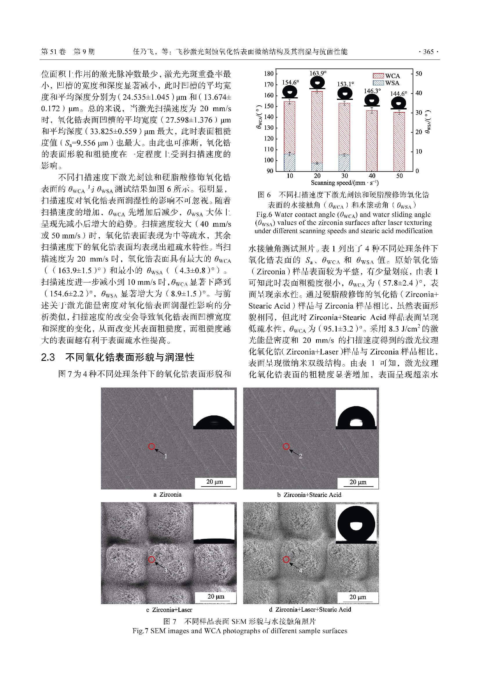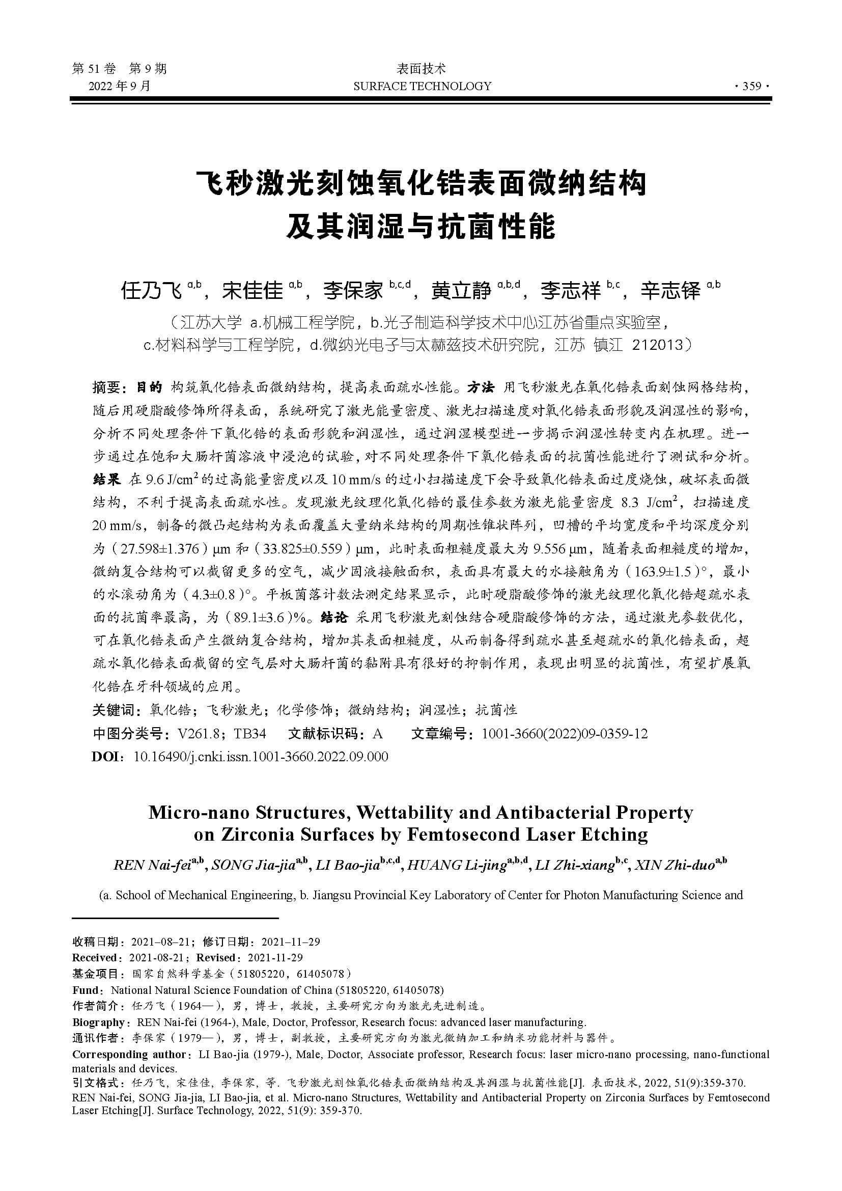 飞秒激光刻蚀氧化锆表面微纳结构及其润湿与抗菌性能